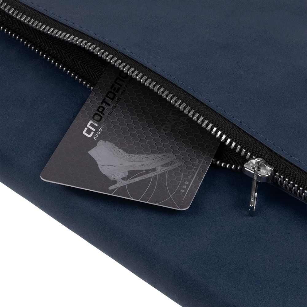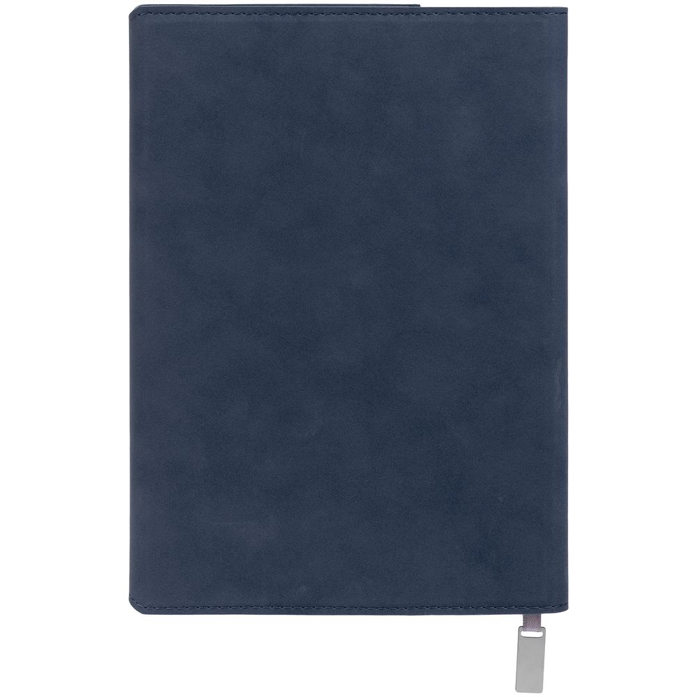 Ежедневник в гибкой суперобложке c карманом на молнии, выполнен из материала Nubuck, темно-синий ХХ. Дополнен капталом и металлической шильдой на ляссе серого цвета.