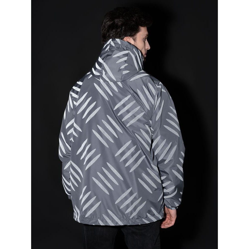 У ветровки с таким паттерном две большие целевые аудитории. Одна — компании, работающие в тяжелой промышленности, другая — все остальные. Согласитесь, довольно мало тех, кто не считает свою работу тяжелой!Ветровка с капюшоном из ткани с водоотталкивающей пропиткой и светоотражающим рисунком.