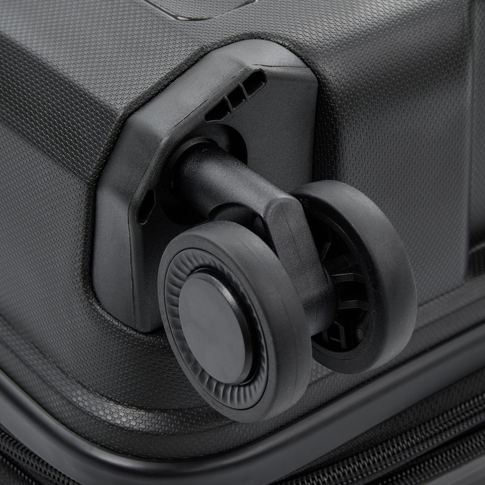 - Блок крепления колеса встроен в корпус чемодана, что обеспечивает лучшую устойчивость к внешнему воздействию