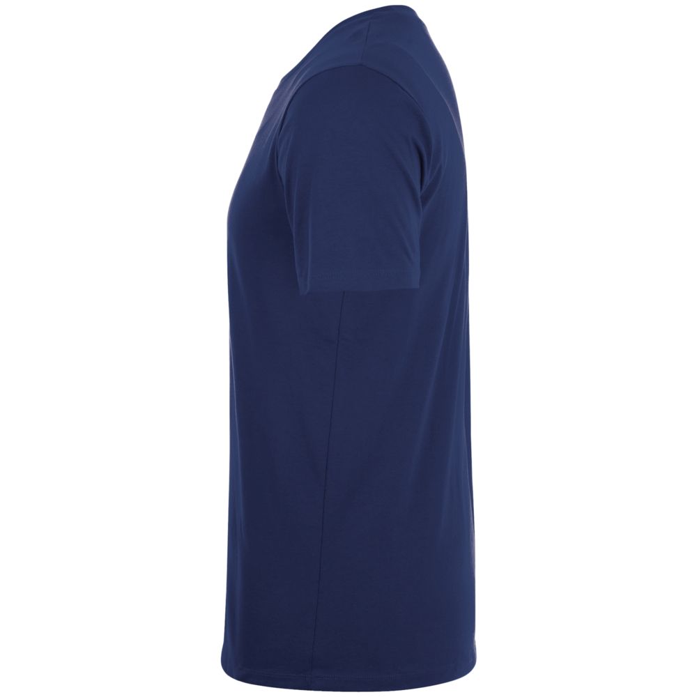 Кроеная мужская футболка с круглой горловиной. Ворот в тонкую резинку с укрепляющей тесьмой. Облегающий силуэт.