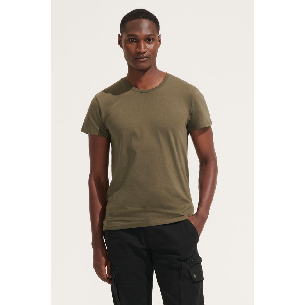 Бесшовная футболка унисекс выполнена из смеси обычного хлопка с переработанным.