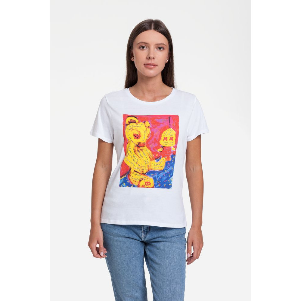 I Don't See You — это фантазия современной художницы Натальи Цилевич на тему сложных и запутанных взаимоотношений. Работы Натальи — это всегда живой эксперимент с чем-то неоднозначным, пугающим, провокационным и в то же самое время прежде небывалым и оттого безумно интересным.Кроеная футболка приталенного силуэта с круглым воротом.