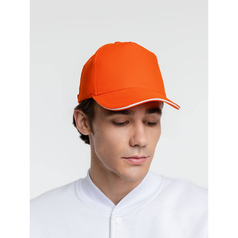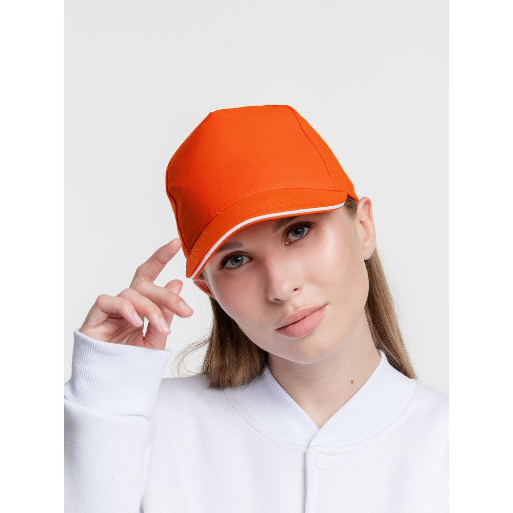 Бейсболка Classic, оранжевая с белым кантом