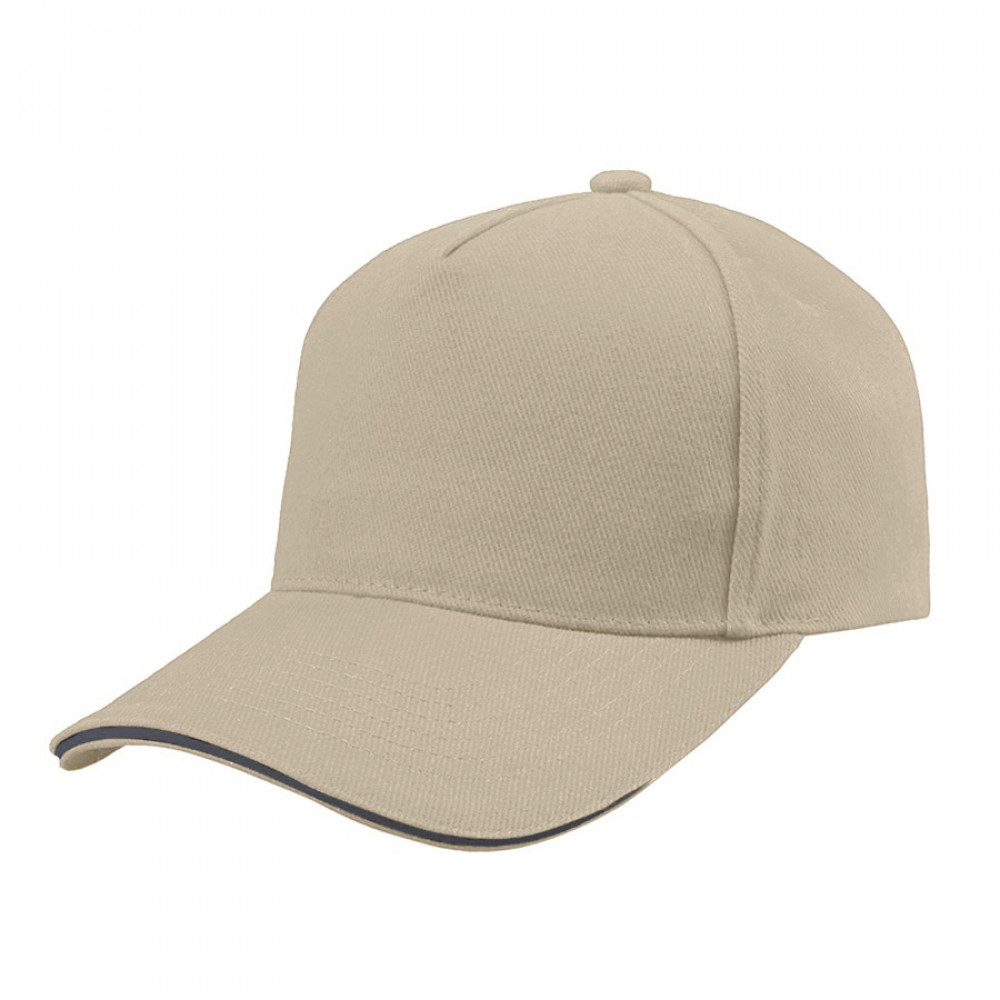 Параметры: Бейсболка "Cover Sandwich", 5 клиньев, металлическая застежка; беж. + т.синий; 100% хлопок; 370 г/м2