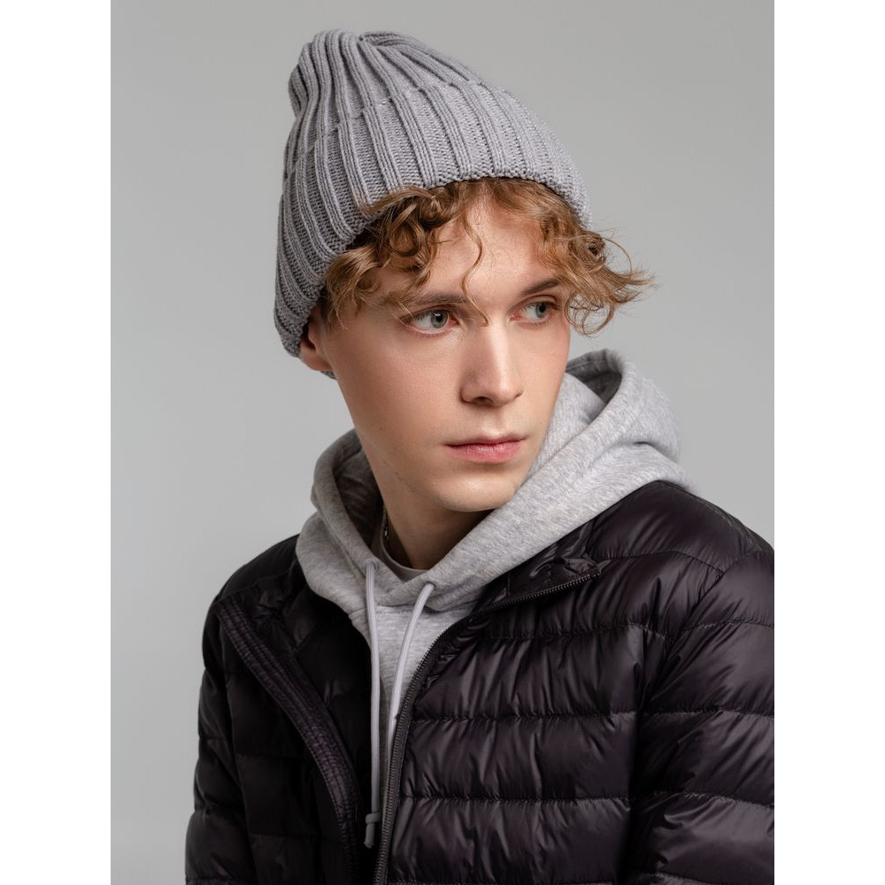 Однослойная шапка фактурной вязки с флисовой подкладкой.