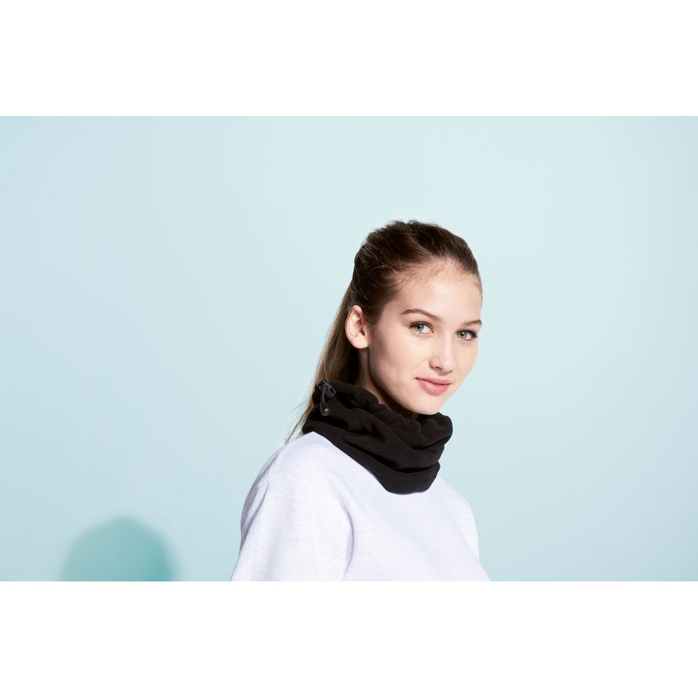 Шарф-шапка дополнена эластичным регулируемым шнурком. Бафф из флиса — незаменимый аксессуар в гардеробе в холодное время года.