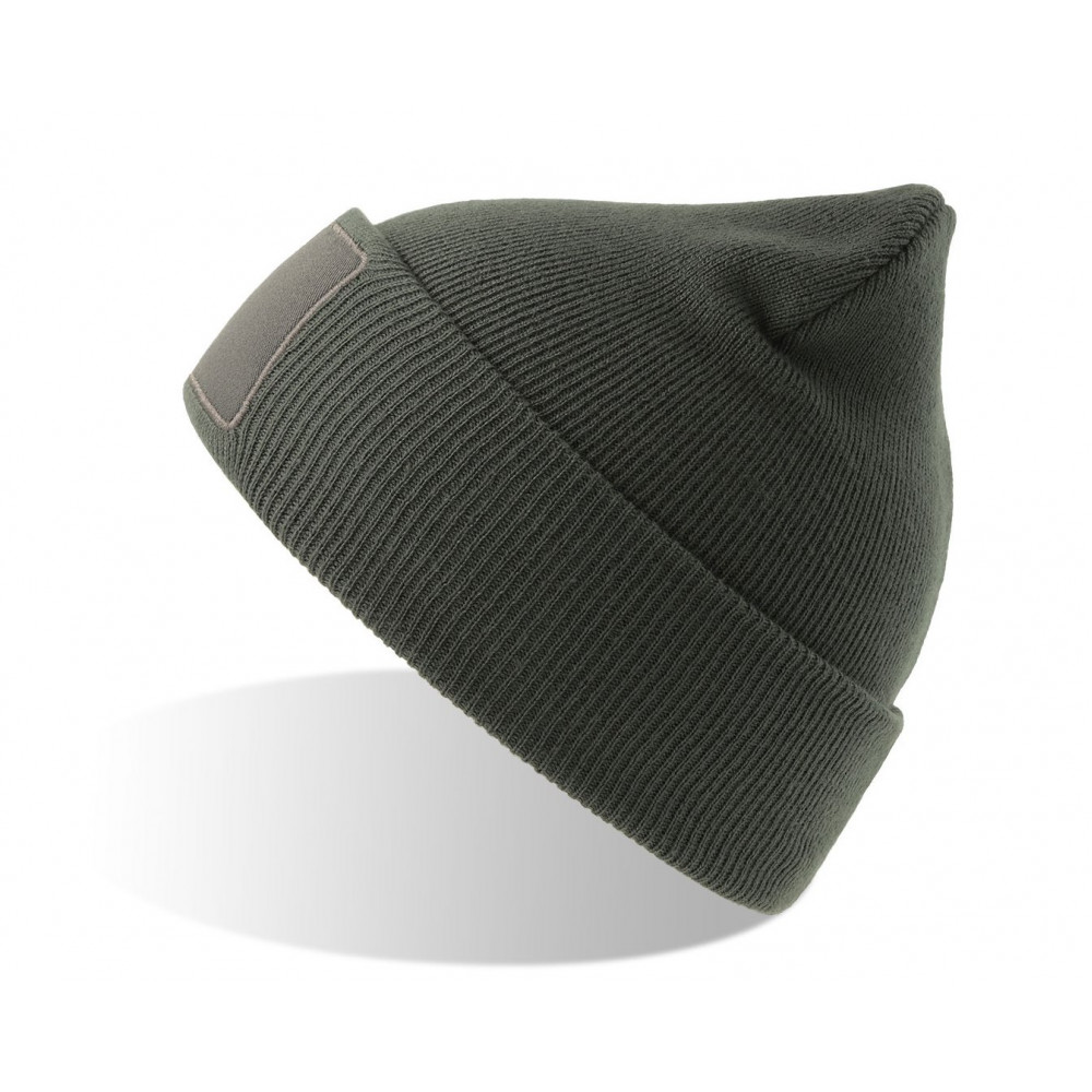 Параметры: Шапка вязаная двойная Wind-S, с отворотом и патчем, темно-серый, 100% переработанный полиэстер
