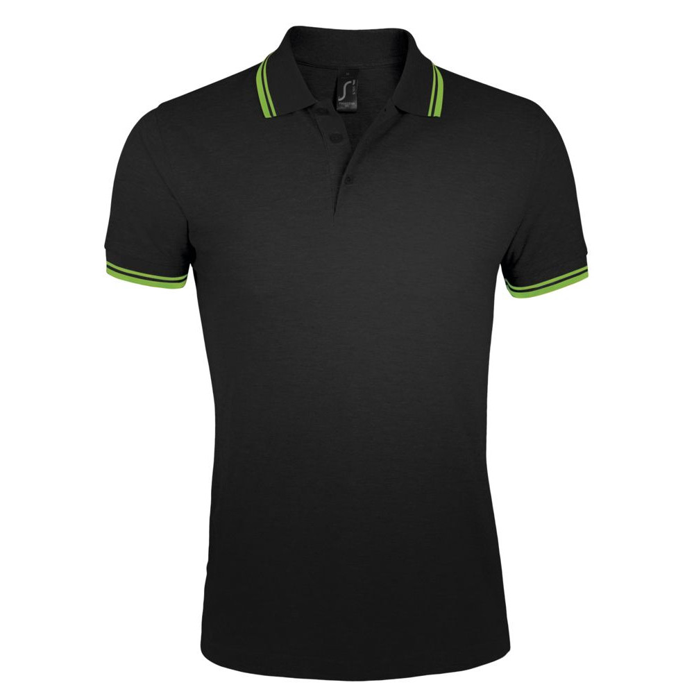 Рубашка поло мужская Pasadena Men 200 с контрастной отделкой, черная с белым