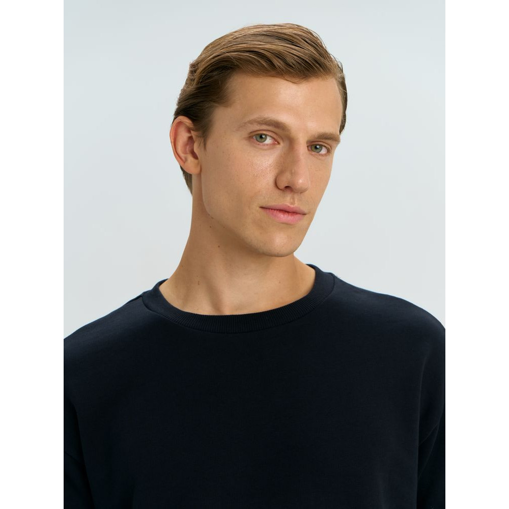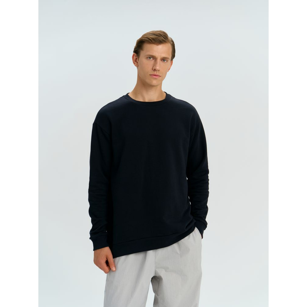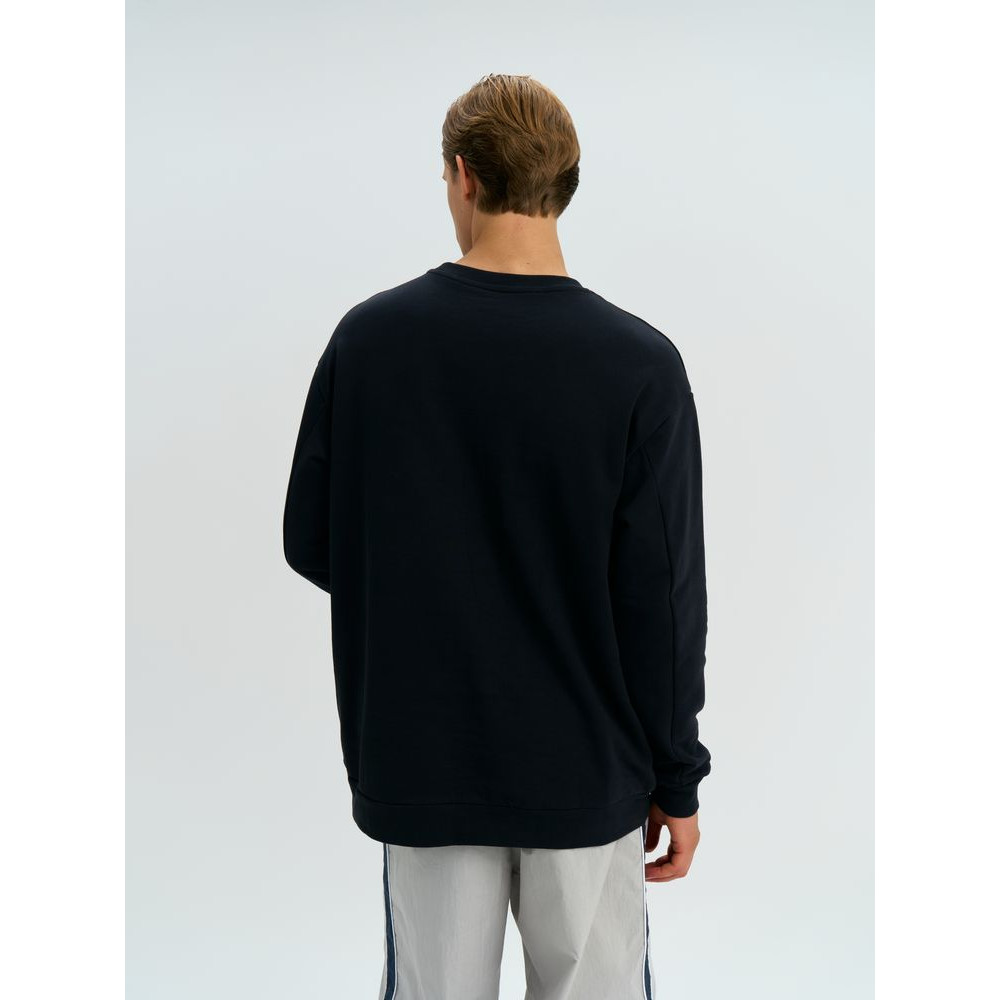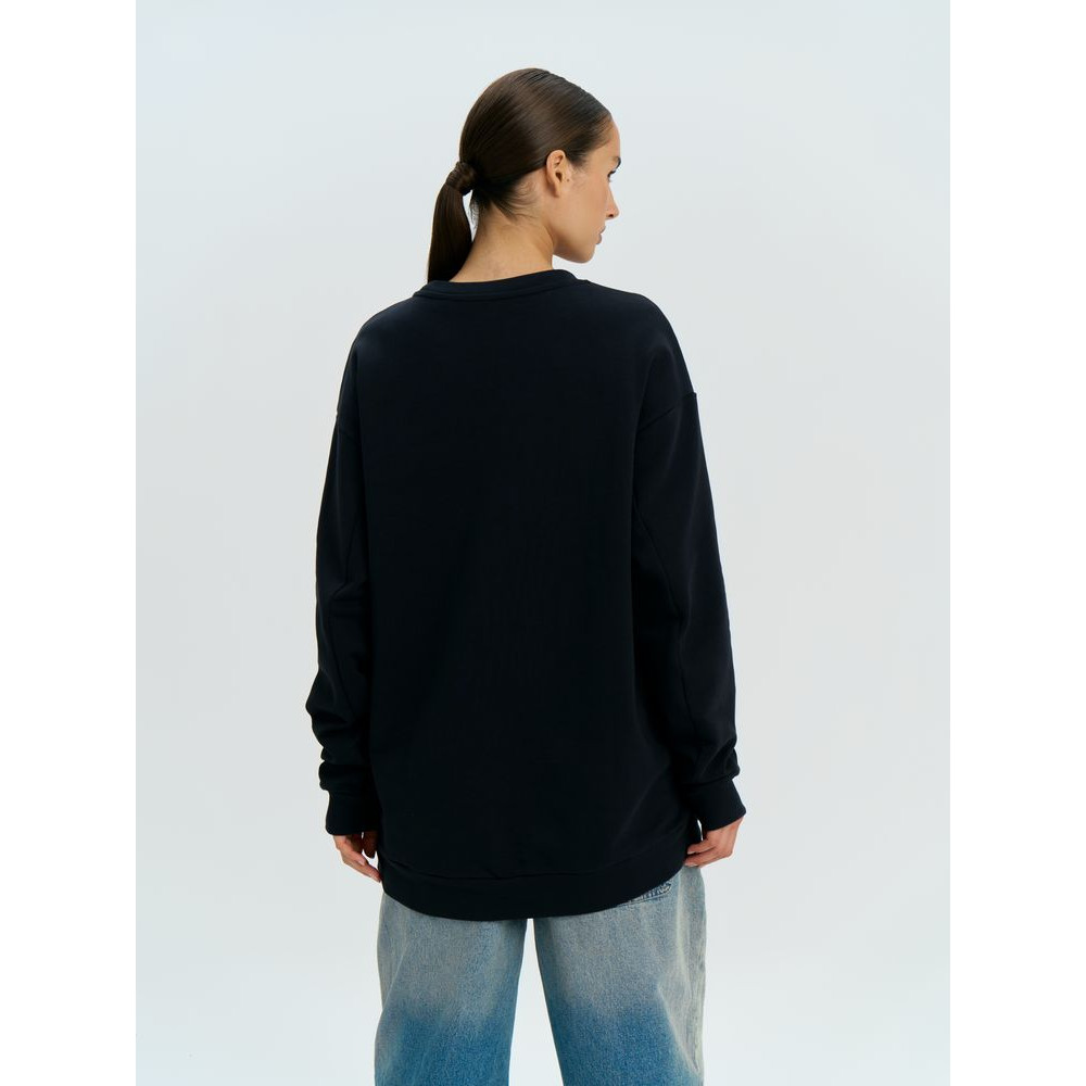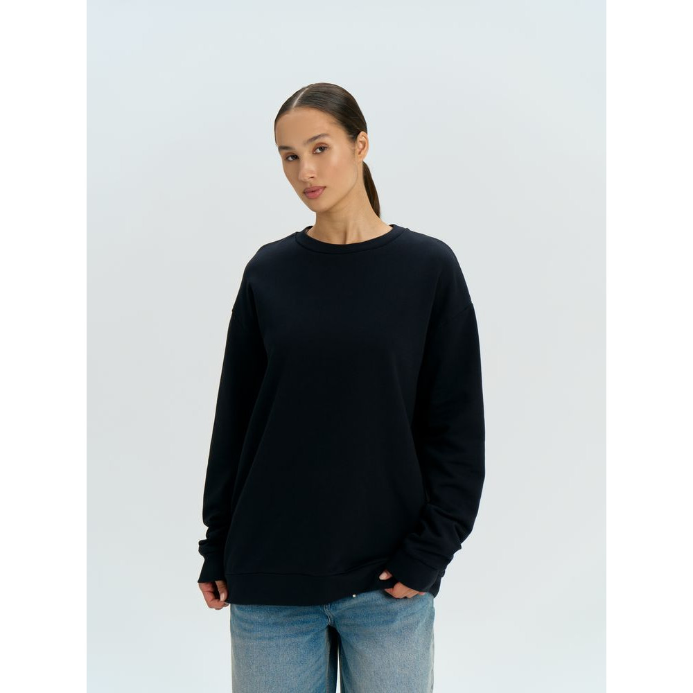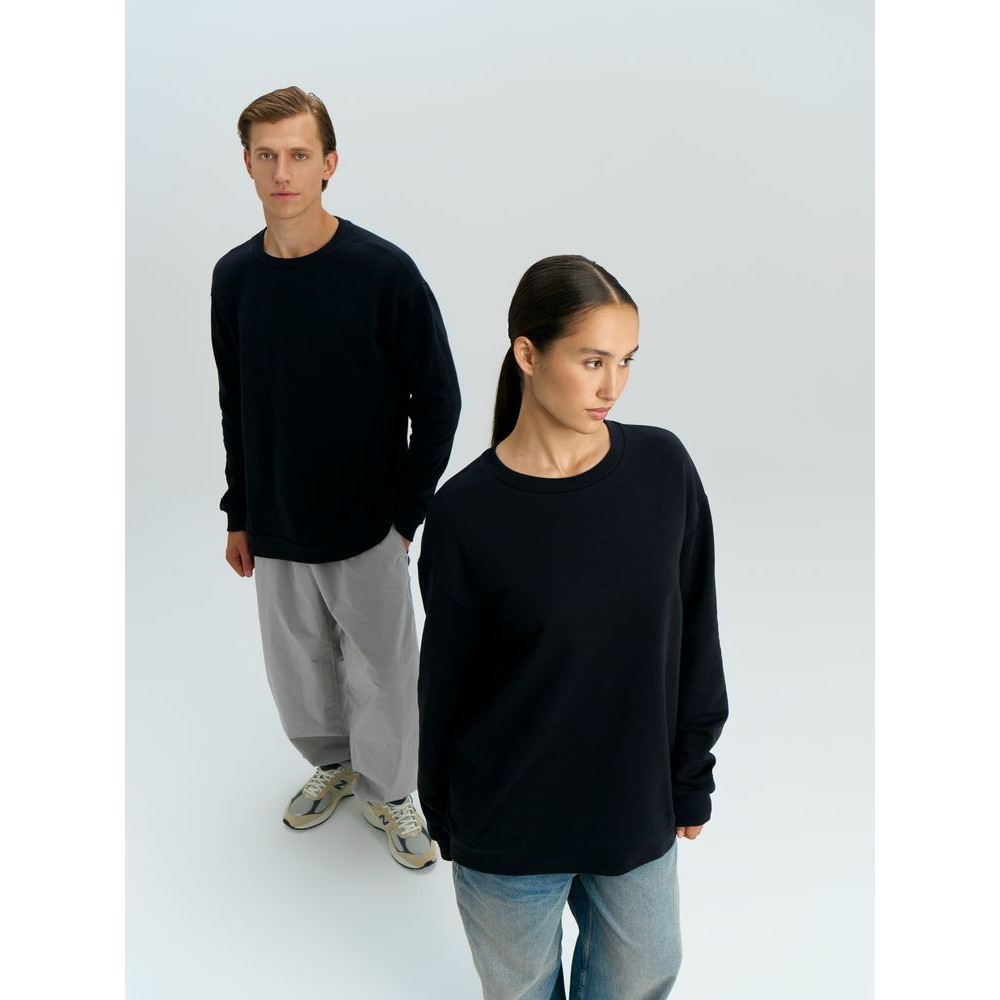 Свитшот унисекс со спущенным плечом и удлиненной спинкой.