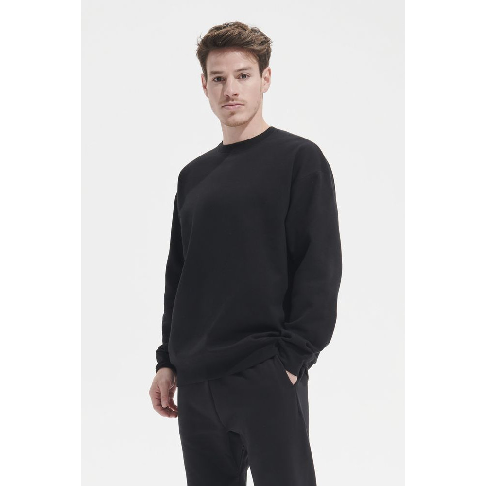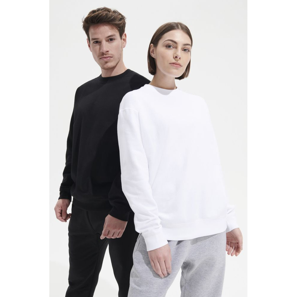 Свитшот унисекс из хлопка и переработанного полиэстера с круглым вырезом и втачным рукавом.