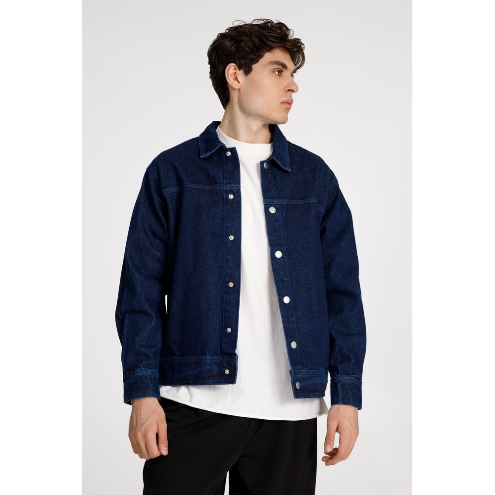 Джинсовая куртка унисекс на кнопках свободной посадки.
