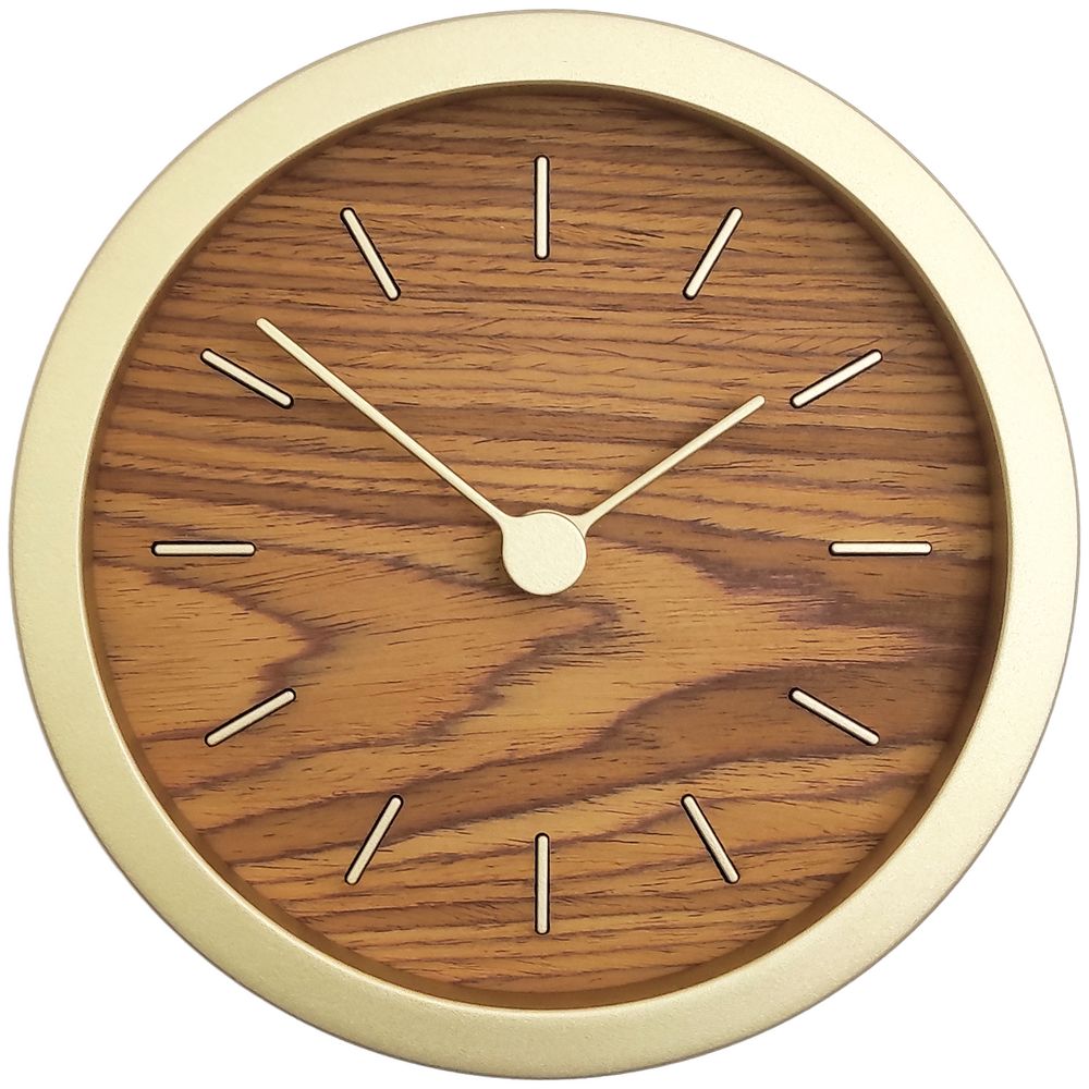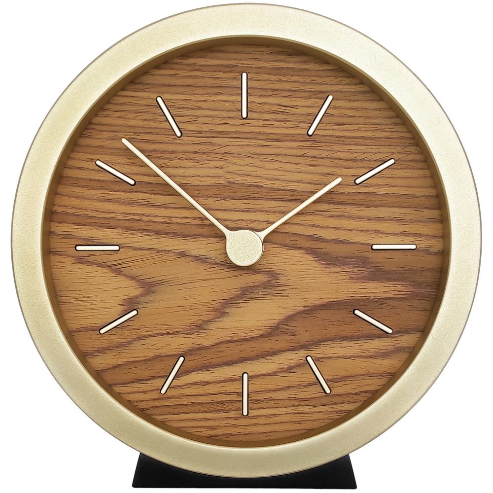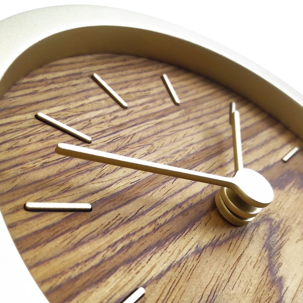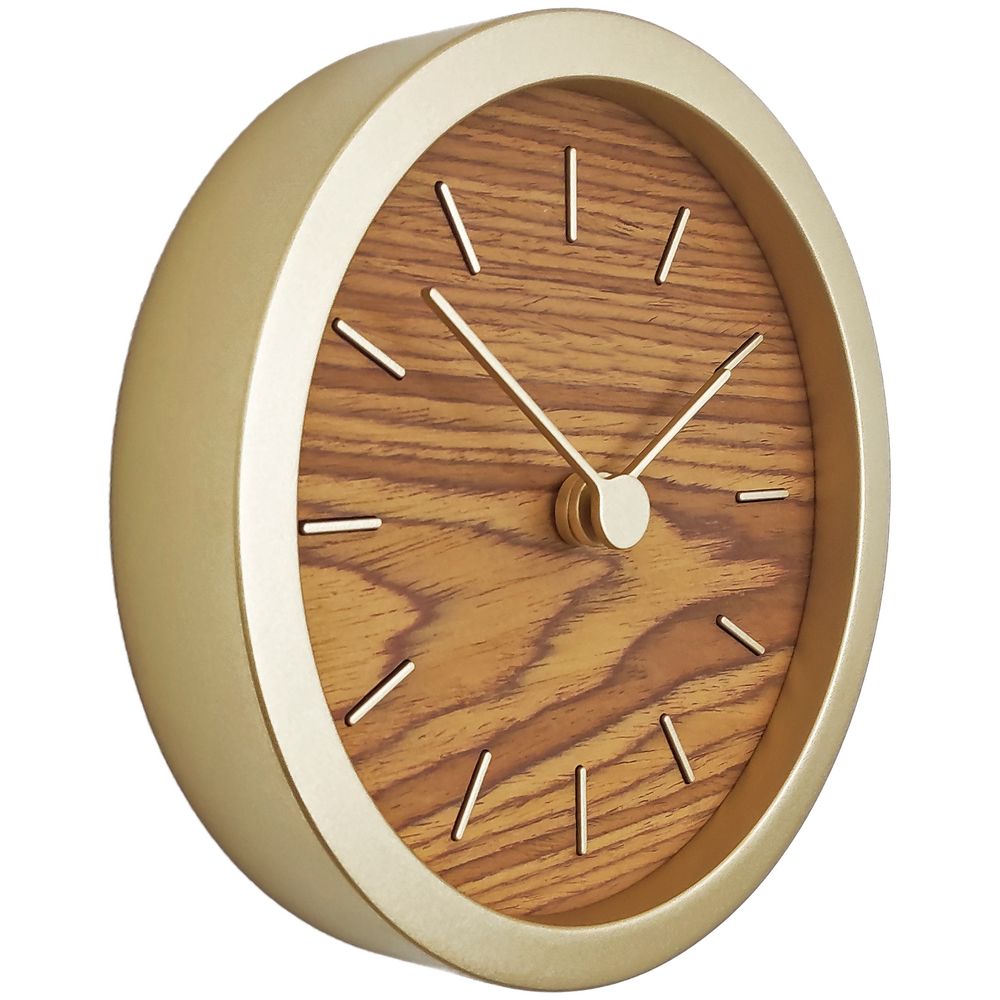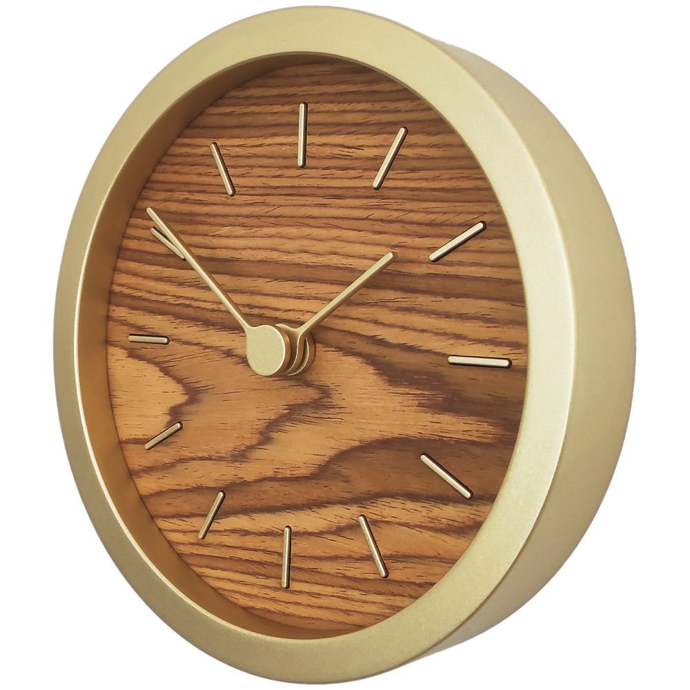 Гармоничное сочетание натурального шпона теплого оттенка и приглушенного золотистого обрамления — в универсальных часах Gracie. Часы можно повесить на стену или разместить на столе или полке — для этого в комплекте предусмотрена специальная подставка.