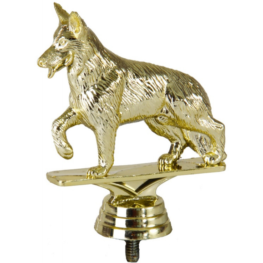Цвет: золото, материал: пластик. Тема: собаки. Фигурка выполнена в виде бегущей собаки. Её правая лапа приподнята над землёй. Длинная шерсть лоснится и переливается на свету. Пушистый хвост опущен вниз. Собака высунула язык от долгого бега. Кажется, что она навострила уши и прислушивается к чему-то. Ниже - круглое основание, на котором имеются горизонтальные линии. Высота, см: 10.2. Фигурку возможно закрепить на цоколь, постамент или кубок.