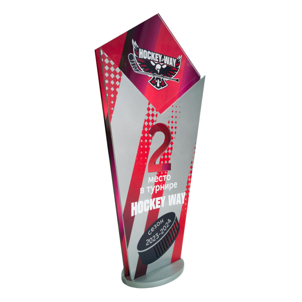 Металлический слой приза добавляет надежность и стабильность, а акрил с УФ-печатью дарит яркие цвета и прозрачность. Эта комбинация создает визуальный эффект глубины и игры света, делая награду по-настоящему уникальной.