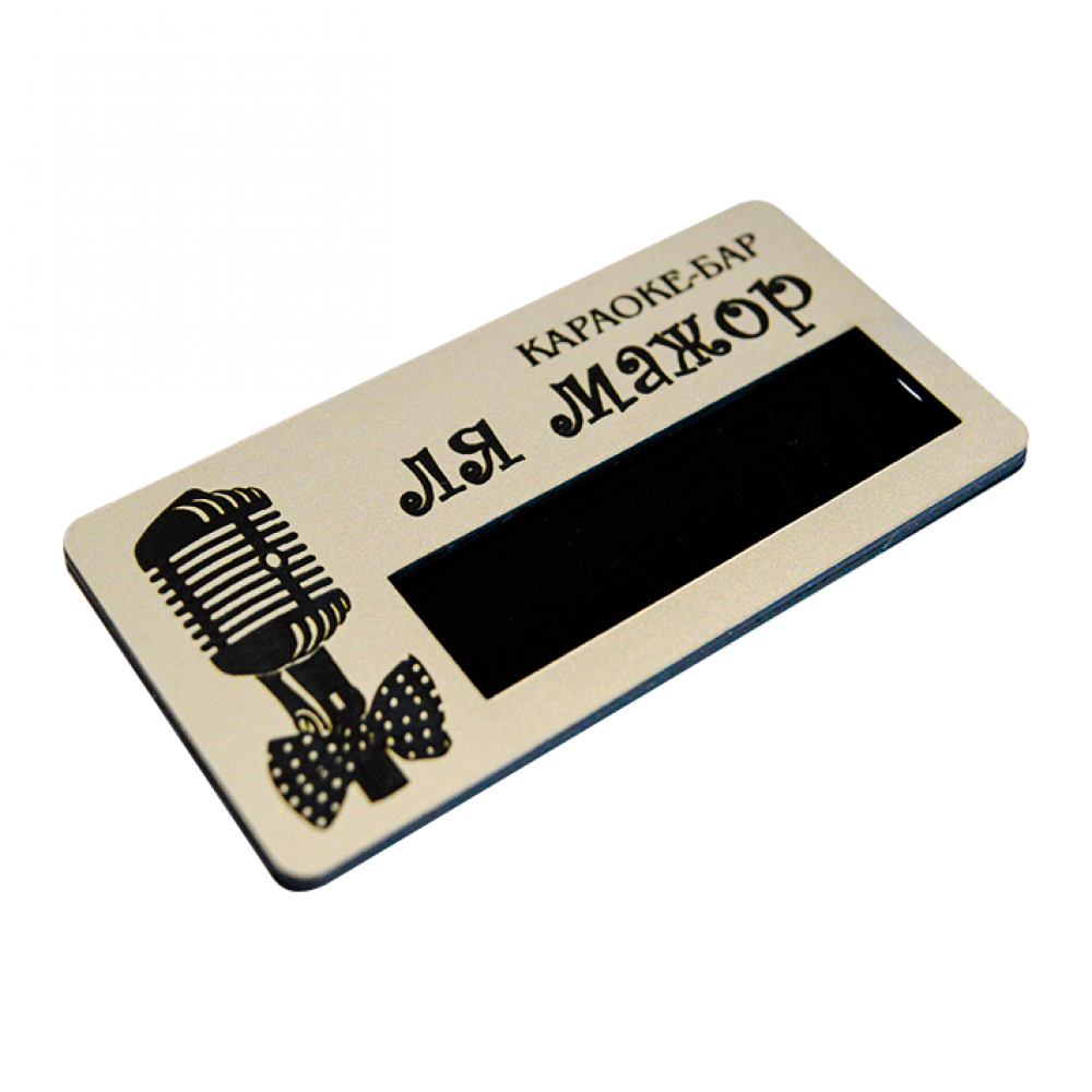 Метод нанесения изображения – лазерная гравировка. В процессе гравировки в соответствии с вашим дизайном с пластика снимается верхний слой и открывается цвет основы. В результате получается рельефное 2х-цветное изображение.
