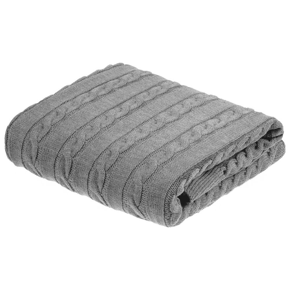 Модель: однотонный плед с фактурной вязкой, которая позволяет сделать его воздушным и объемным. Чередуя различные типы петель на гладком полотне, можно вывязать любую графику — логотип, текст, товарный знак.