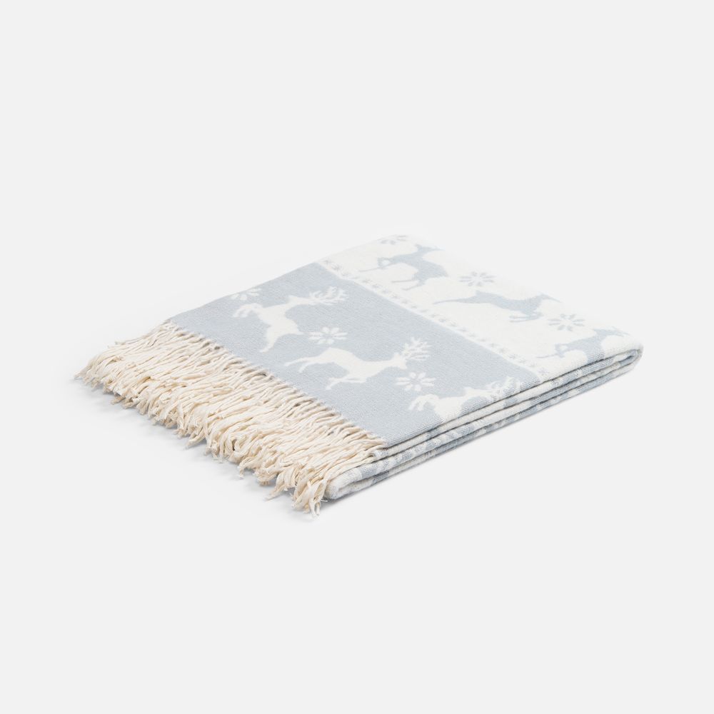 Уникальный жаккардовый рисунок с изображением грациозных оленей и изящных снежинок перенесет в мир северной сказки. Каждая деталь узора тщательно проработана и сразу привлекает внимание, а плед моментально создает неповторимую атмосферу зимнего волшебства.