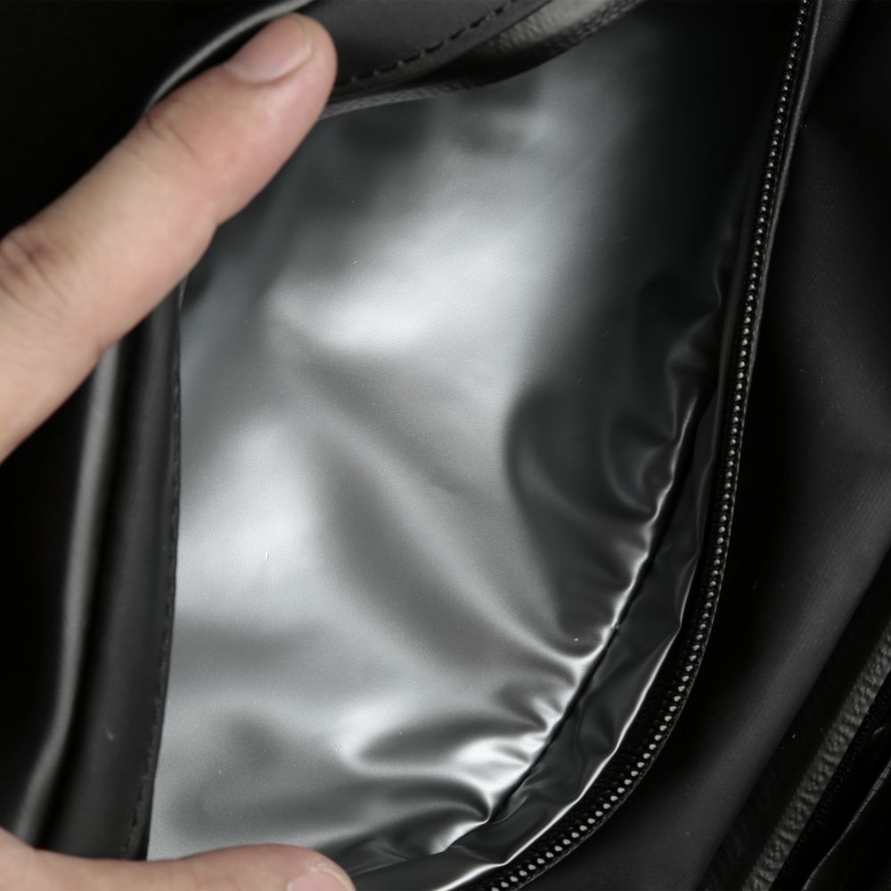 • Внешний карман с дополнительной водозащитной подкладкой для термокружки, бутылки с водой или зонта, также закрывается на водонепроницаемую молнию YKK