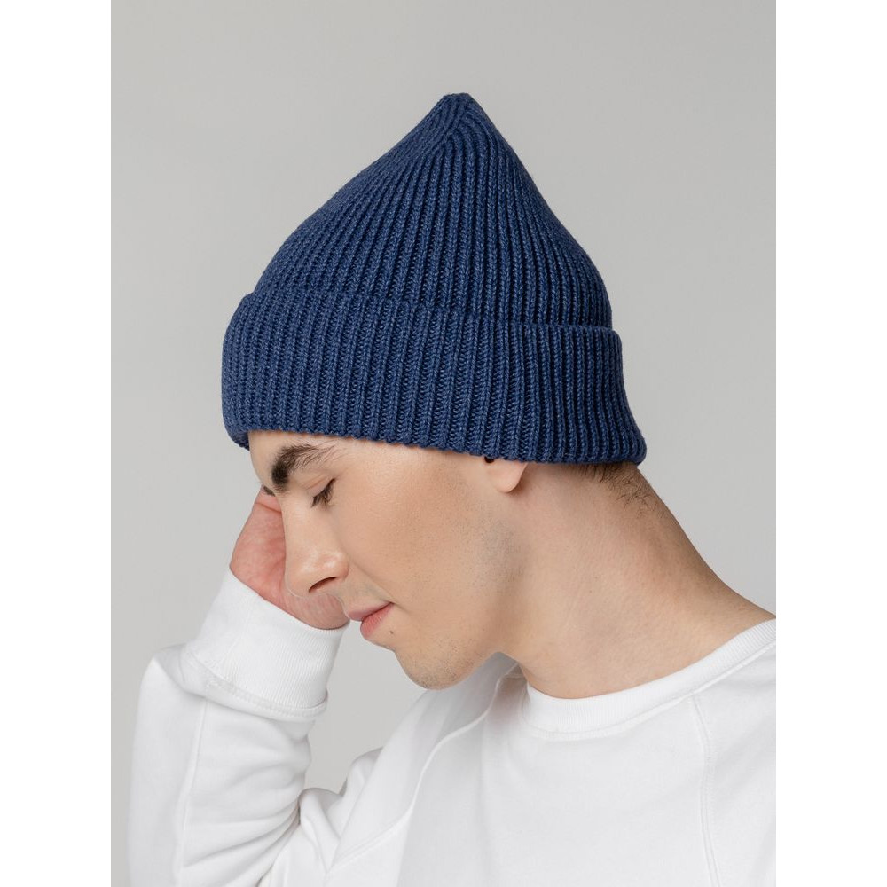 Однослойная шапка рельефной вязки с отворотом.