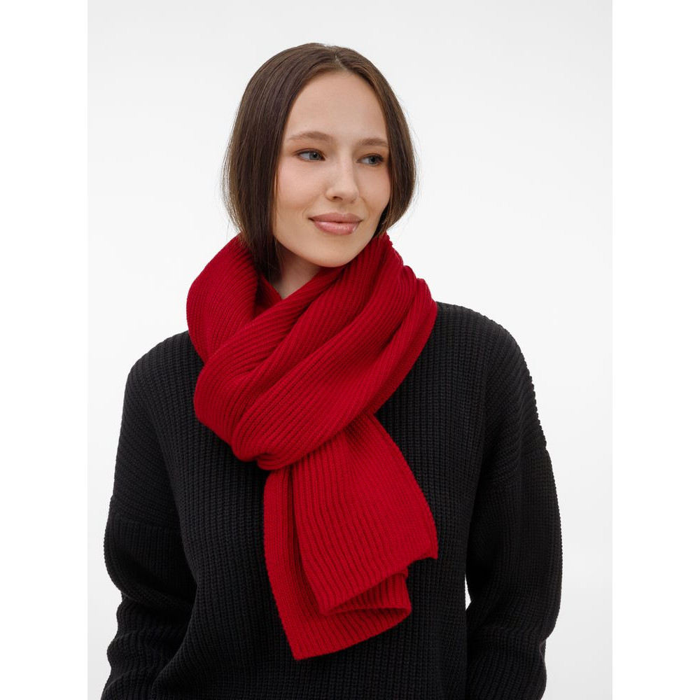 Широкий шарф из мягкой полушерстяной пряжи с выразительной фактурной вязкой создает современный запоминающийся образ.