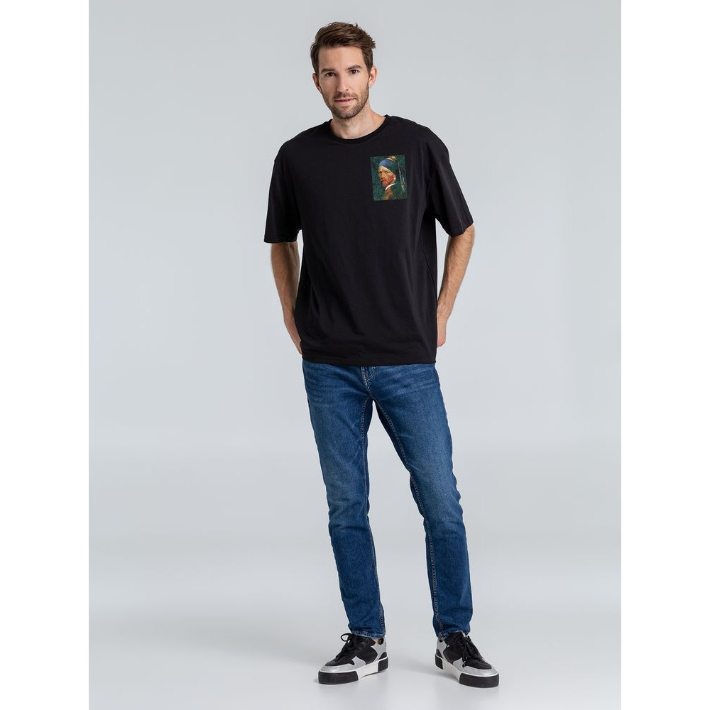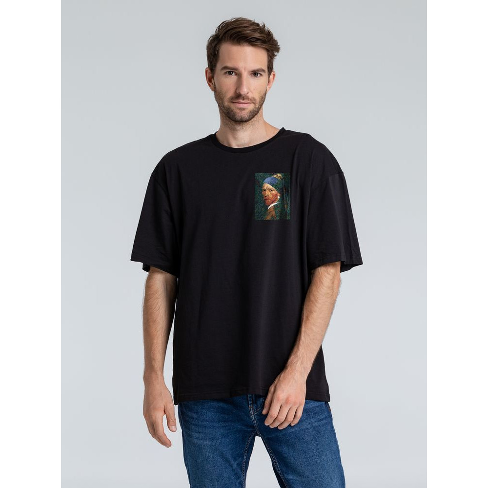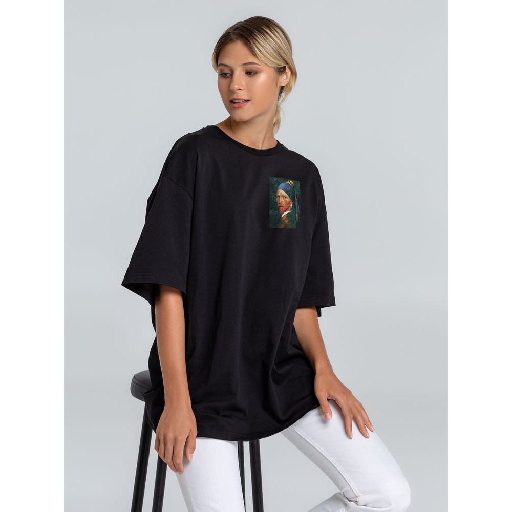 Футболка оверсайз «Мужчина с жемчужной сережкой», черная