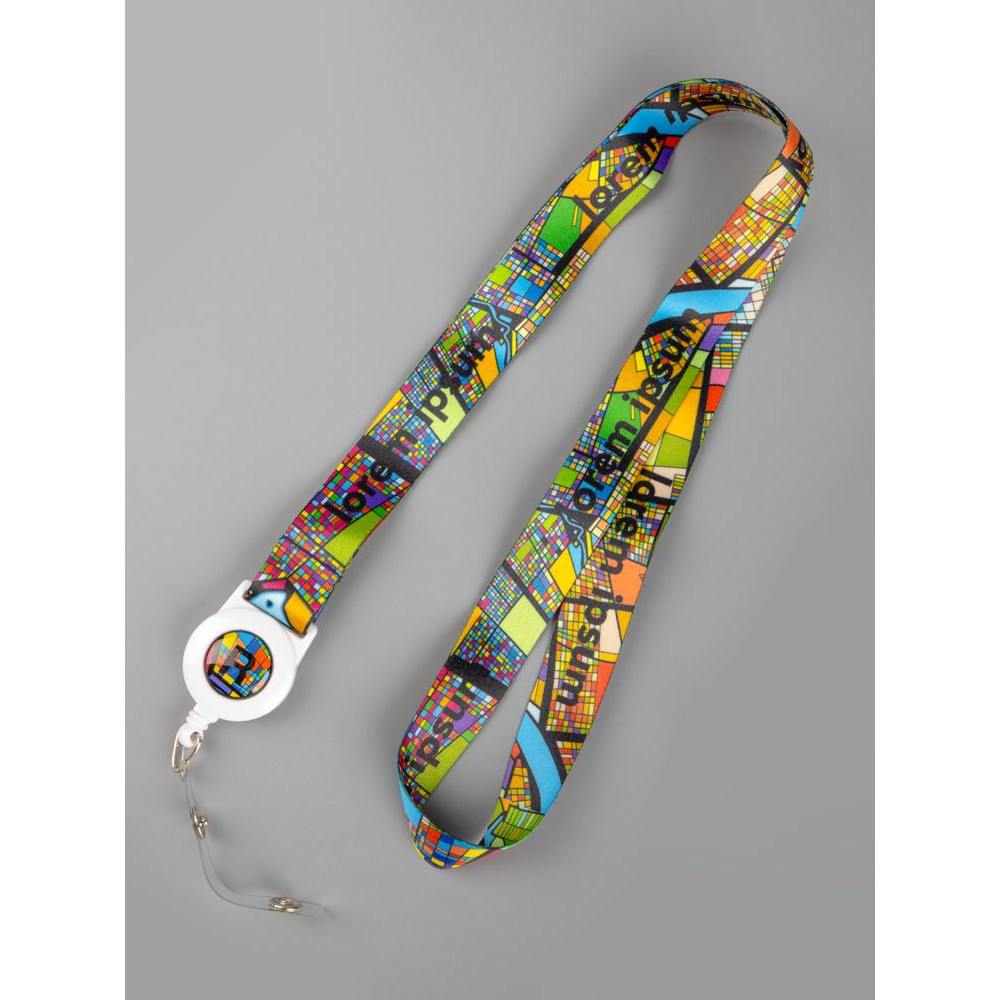 Полноцветная сублимационная печать на ленте с двух сторон и наклейка под смолой на ретракторе входят в стоимость изделия.Приложите к заказу оригинал-макет, выполненный в конструкторе.