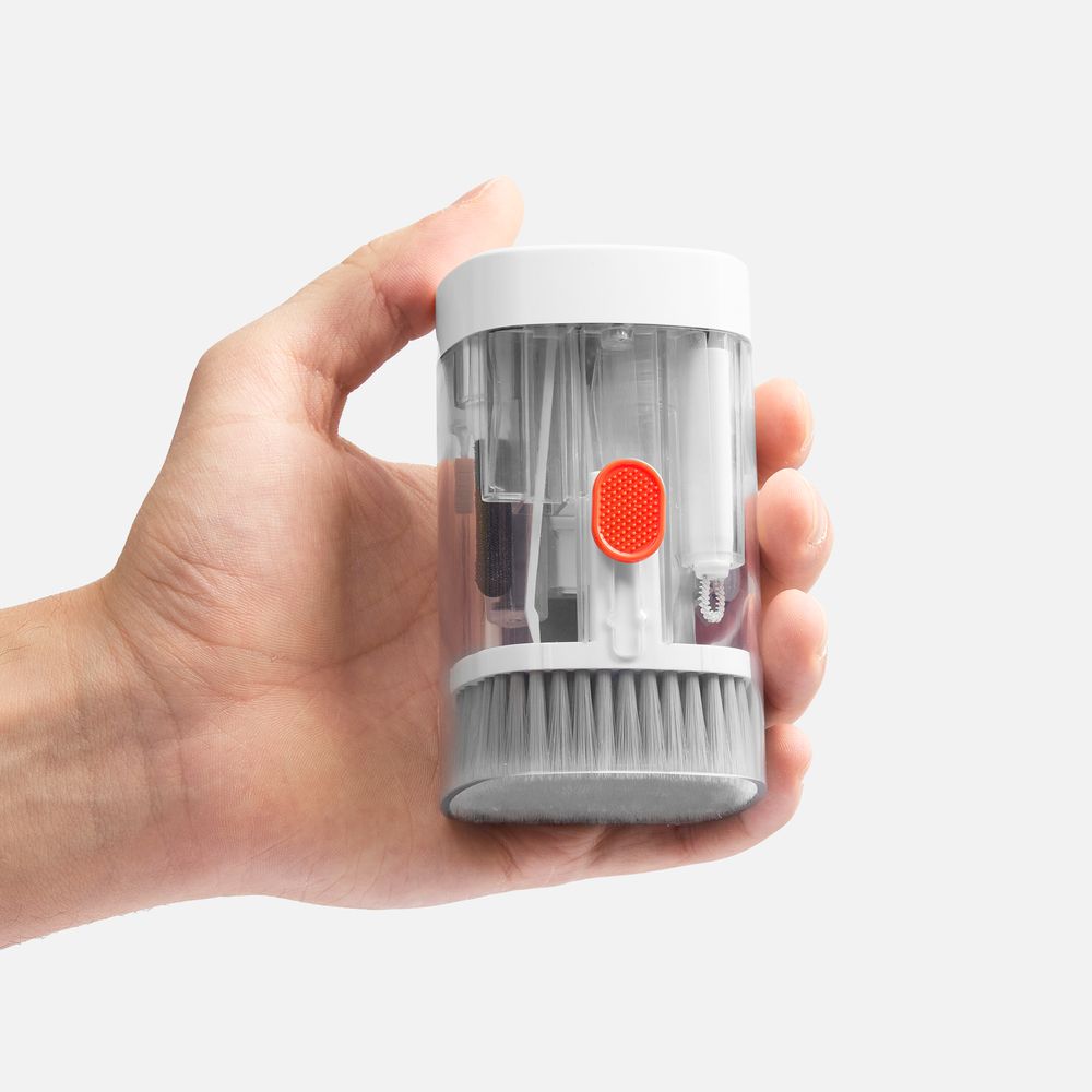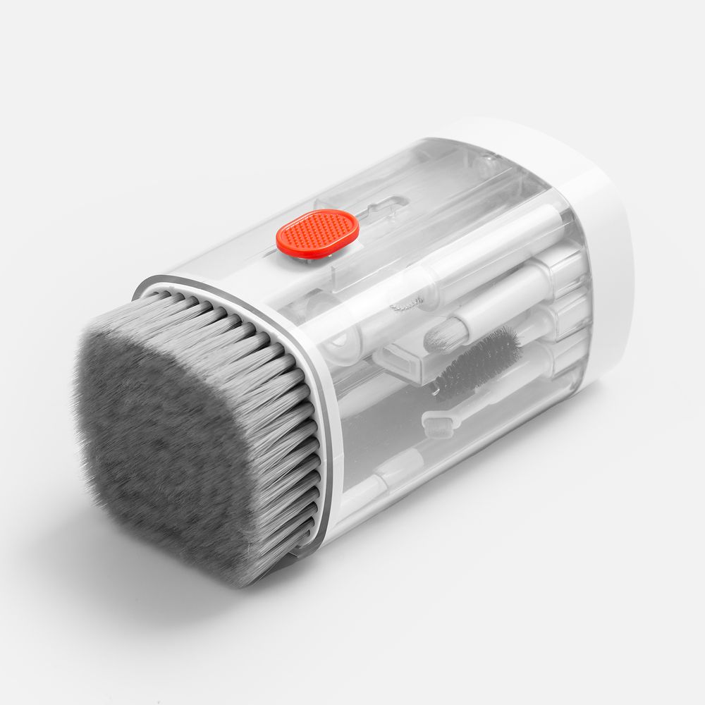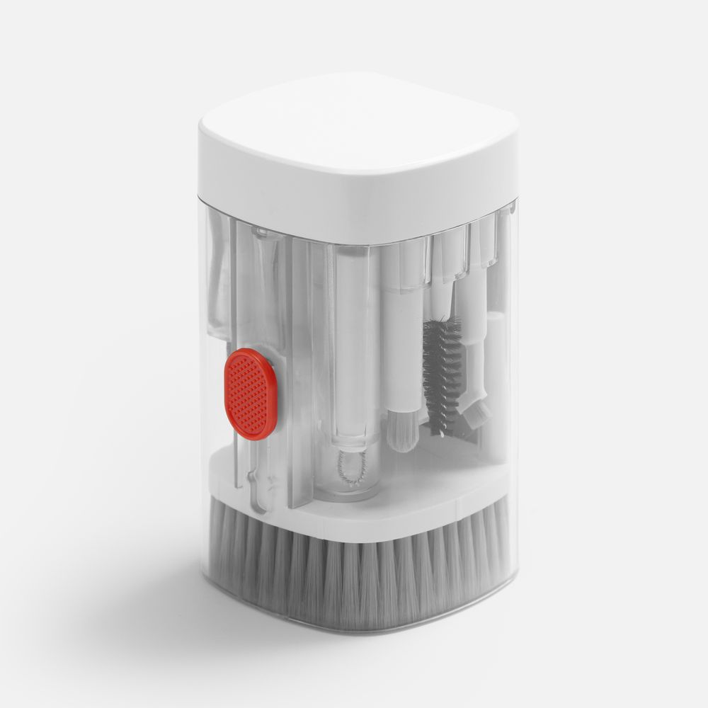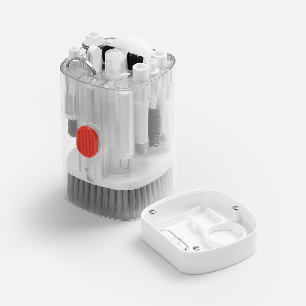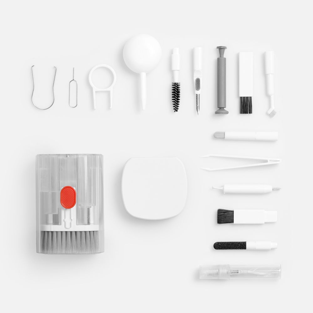 • В комплекте: большая щетка, салфетка для ухода за дисплеем, контейнер для жидкости, пластиковый пинцет, щетка с жесткой щетиной, щетка с мягкой щетиной, чистящее перо со щеткой для наушников, насадка для чистки кейса от наушников, ершик для чистки кейса от наушников, щетка с короткой щетиной, щетка с наклонной щетиной, двусторонняя насадка для чистки разъемов зарядки, двусторонняя насадка для чистки камеры, инструмент для продувки, дуговой пинцет, ключ для отсека SIM-карты, инструмент для извлечения поврежденных ключей