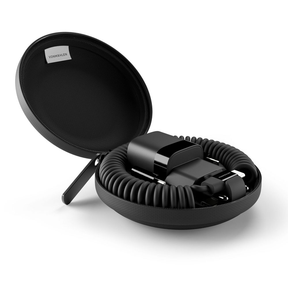 Vonmаhlen Allroundo GaN — это компактный и удобный в использовании аксессуар, сочетающий в себе зарядное устройство мощностью 30 Вт и многофункциональный кабель с переходниками для удобной зарядки самых разных устройств. Комплект переходников позволяет создать до 6 разных конфигураций зарядного кабеля, что делает его по-настоящему универсальным.