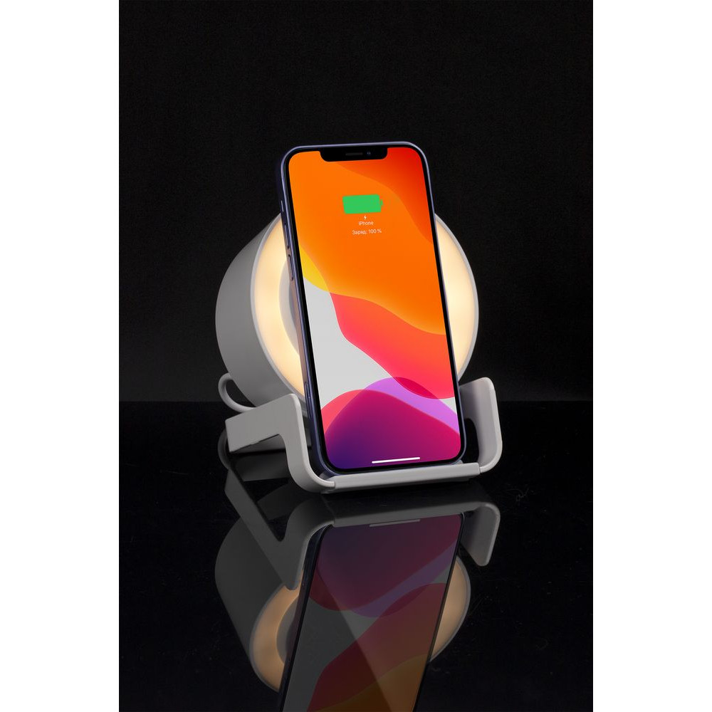 Гаджет совместим со всеми мобильными устройствами, поддерживающими технологию беспроводной зарядки Qi. Зарядка начинается автоматически при размещении смартфона на подставке.