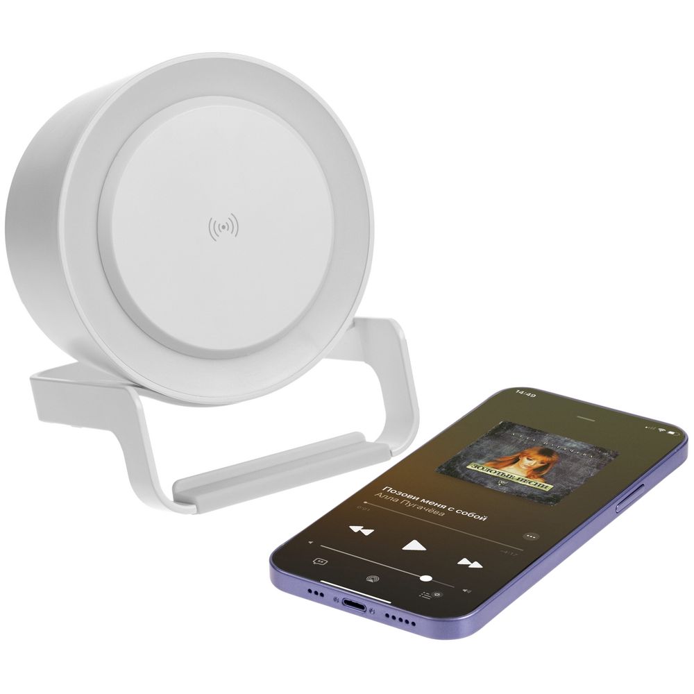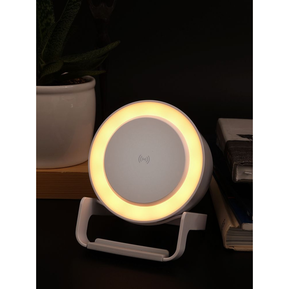 Лампа с колонкой и беспроводной зарядкой moonLight, белая