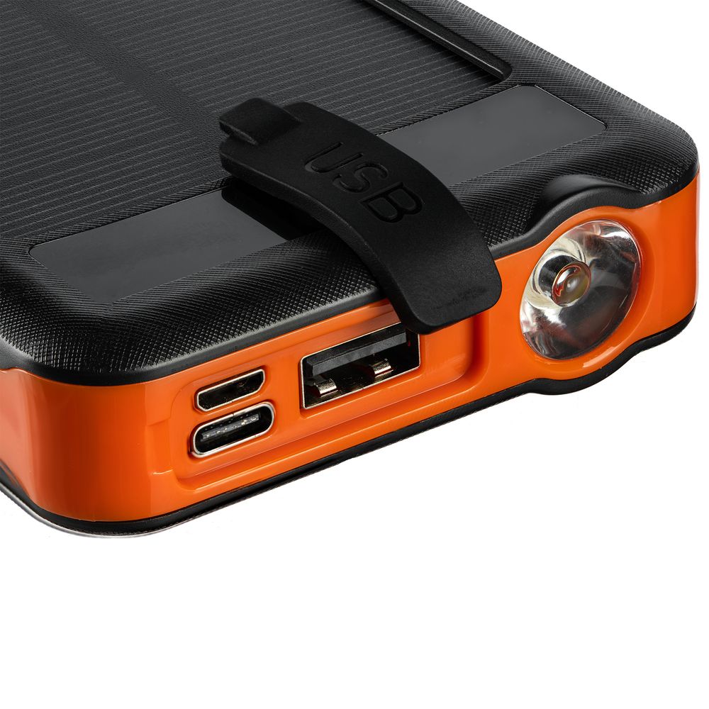 Holiday Maker — outdoor-аккумулятор с ударопрочным корпусом и защитой от пыли и брызг, который не страшно взять в поход. С ним удобно заряжать разные типы устройств благодаря 3 встроенным кабелям с разъемами micro USB, Type-C и Lightning. С солнечной батареей получится не остаться совсем без связи. Яркий фонарик осветит путь или послужит сигнальным маячком.