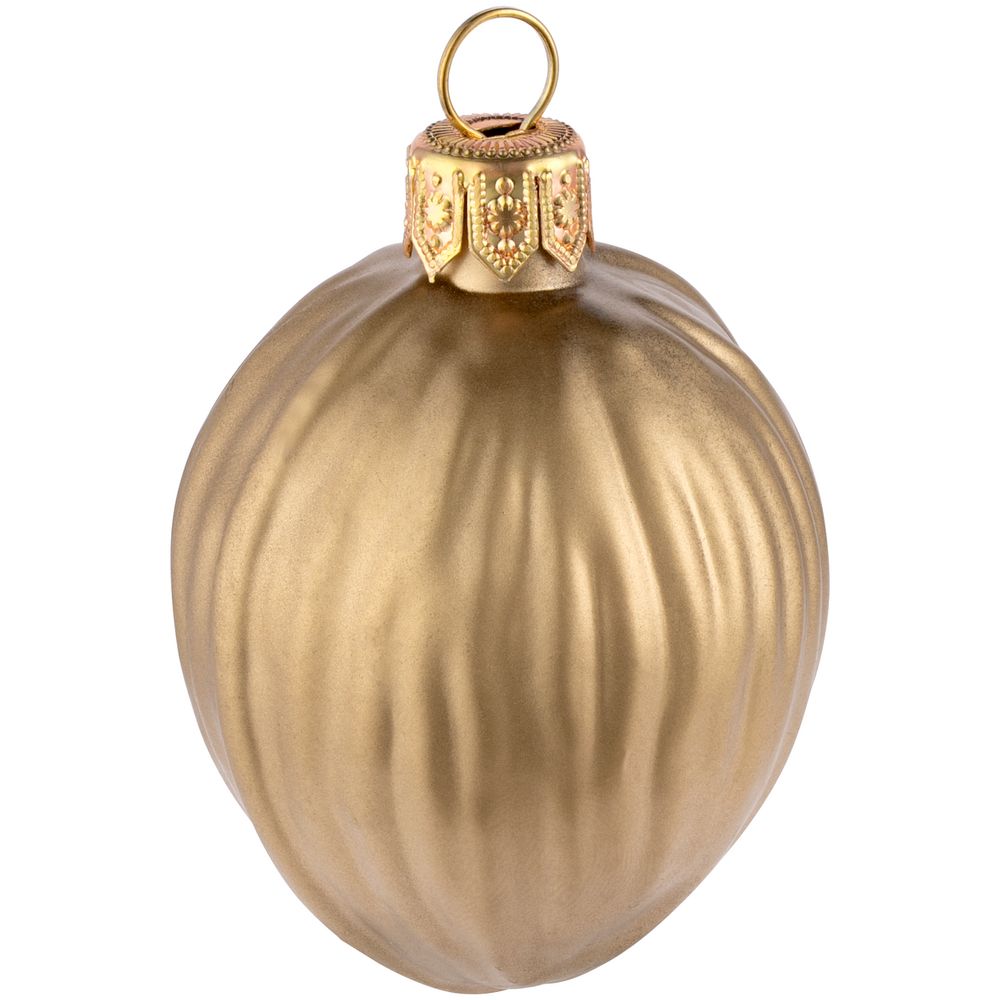 Елочная игрушка «Грецкий орех», матовое золото