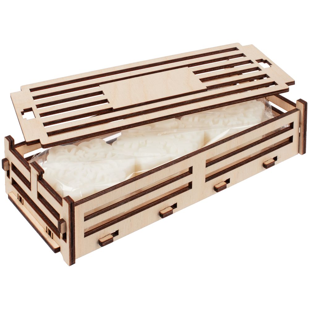 Набор из трех свечей в фанерном ящичке. Каждая снежинка в наборе представлена в своем неповторимом узоре.