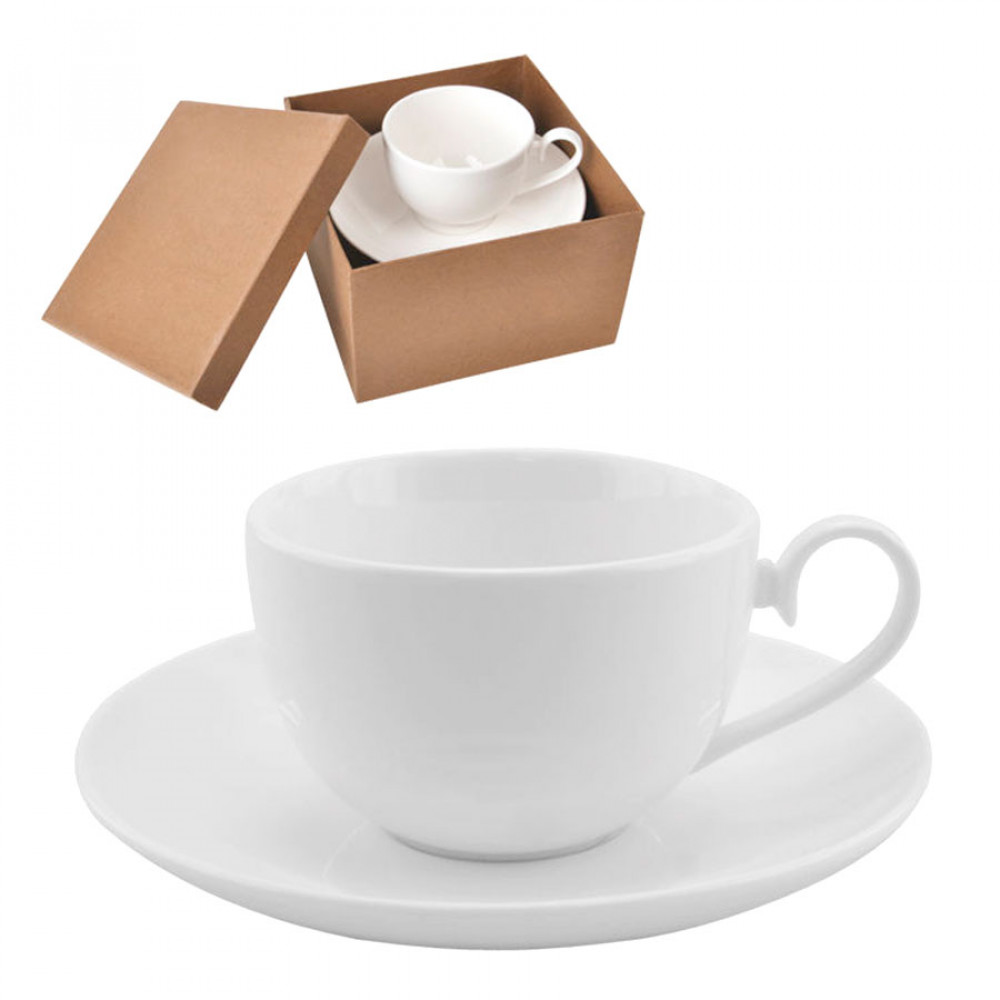 На идеально белой паре любой логотип, надпись или пожелание будет смотреться выигрышно и заметно. Форма чашки и блюдца универсальная, а нежная тонкая ручка обращает на себя внимание изяществом и элегантностью. Держать даже полную чашку удобно и легко, а любая пауза для любимого напитка