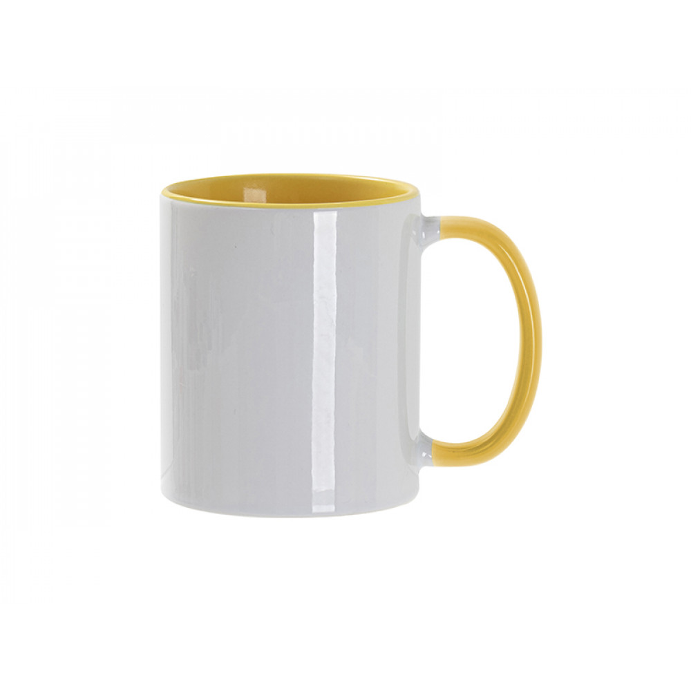 Параметры: Кружка для сублимации, 330 мл, d=82 мм, стандарт А, белая, желтая внутри, желтая ручка