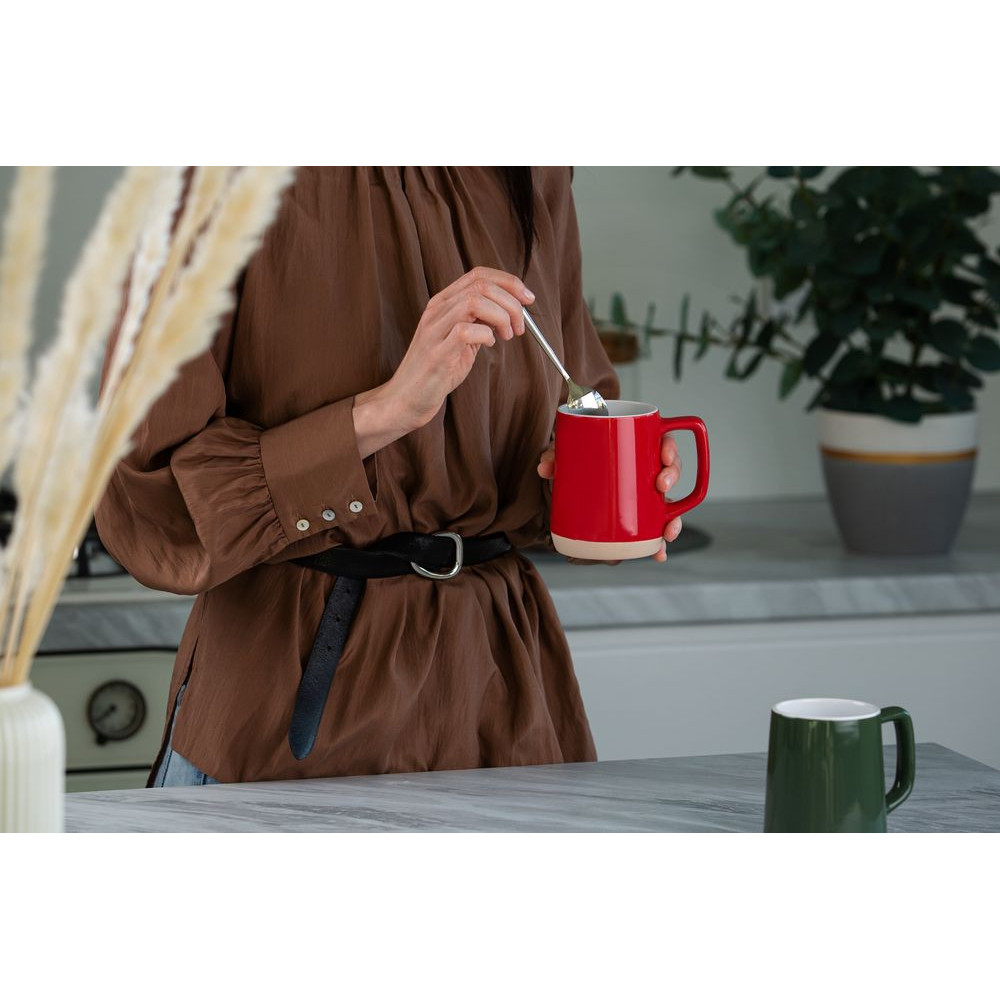 Приятно тяжелая кружка Gonna подходит как для горячих, так и холодных напитков. Благодаря сужающейся кверху форме и толстым стенкам напиток в кружке дольше остается теплым.