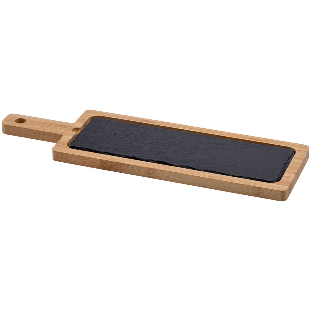 Сервировочная доска из бамбука со сланцевой вставкой может использоваться для оригинальной подачи сыра, хлеба и любых других закусок. За сланцевой посудой легко ухаживать, она не подвержена распространению грибка и бактерий. Перед первым применением доску следует помыть с использованием моющих средств.