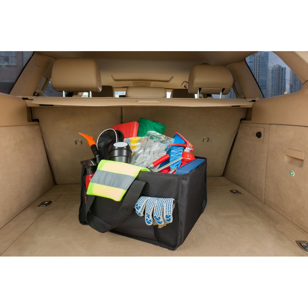 Органайзер с тремя отсеками, наружными карманами с трех сторон и 4 петельками для крепления мелочей. В нем легко разместить все необходимые автомобилисту инструменты и аксессуары.