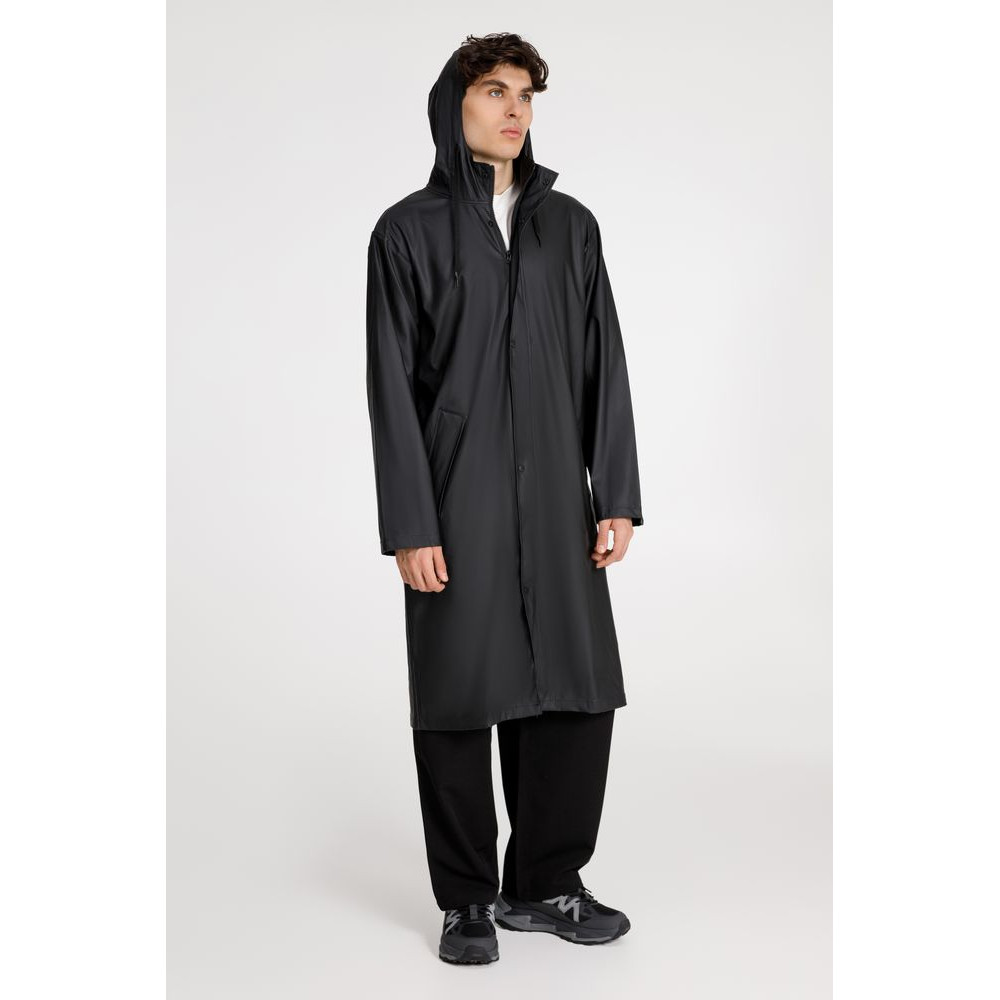 Плащ-дождевик с капюшоном из полиэстера с полиуретановым непромокаемым покрытием.