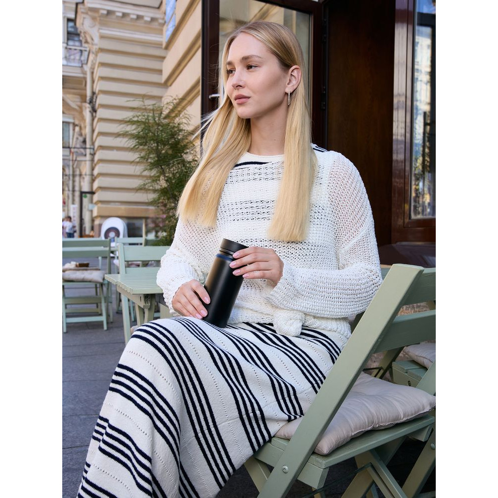 - Герметичная завинчивающаяся крышка с силиконовым уплотнителем и питьевой системой с клапаном — технология 360° позволяет одним нажатием открывать кружку и пить с любой стороны