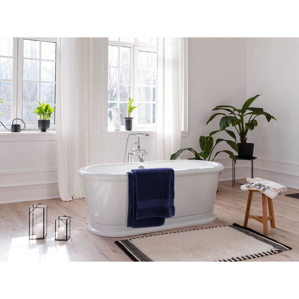 Разноуровневая махровая ткань создает объем и обеспечивает мгновенное впитывание и деликатный массажный эффект, а широкий хлопковый бордюр открывает возможности для особенной персонализации.