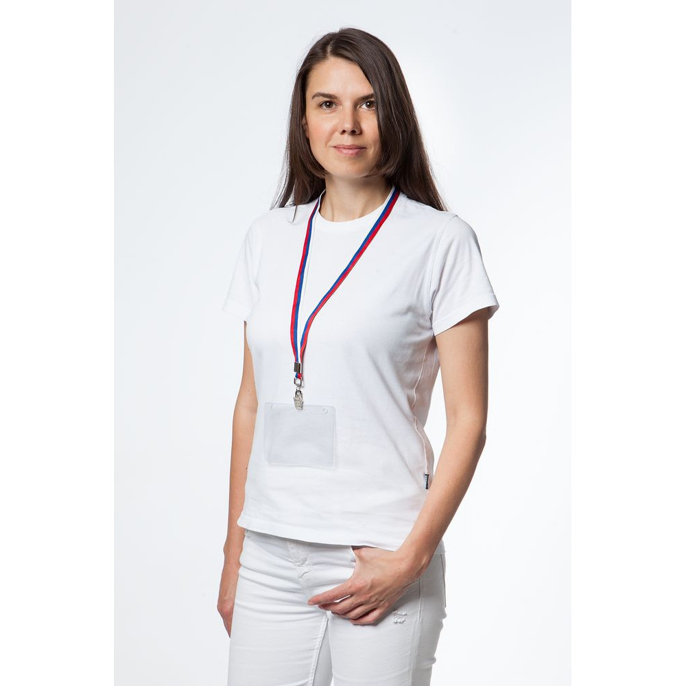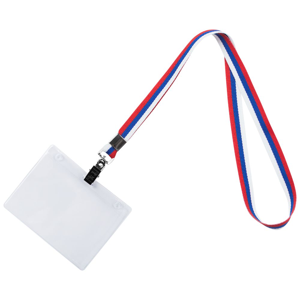 Бейдж крепится к ленте с помощью металлической клипсы.
