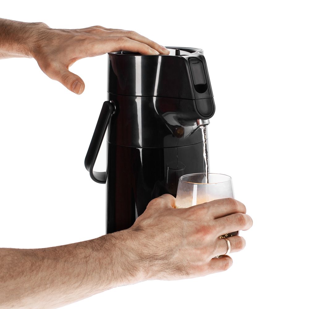 • Наливной носик позволяет легко дозировать напитки простым нажатием кнопки на крышке