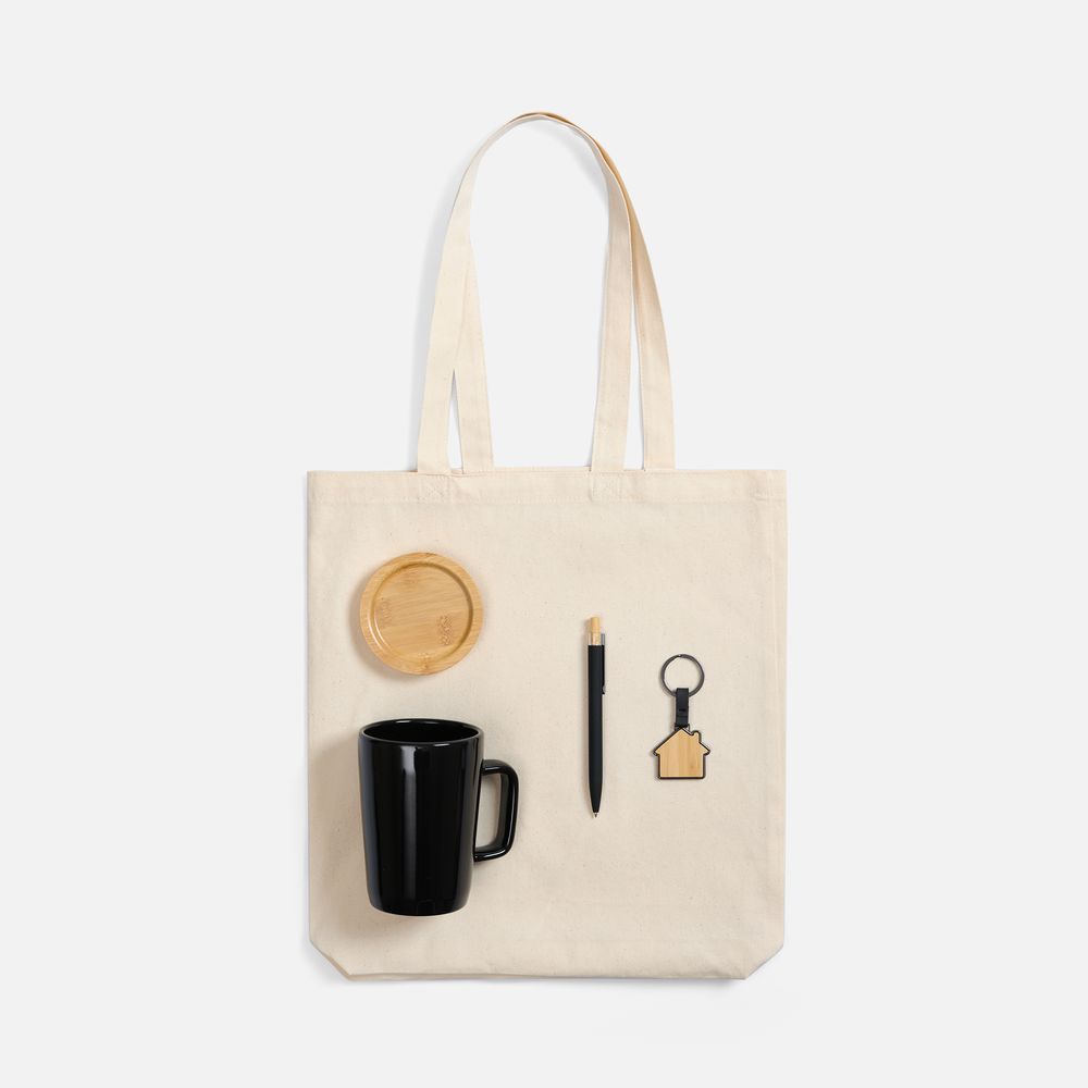 В комплекте: полезные и функциональные аксессуары с деталями из бамбука, упакованные во вместительную холщовую сумку. Все для вдохновенных идей и продуктивных дней!