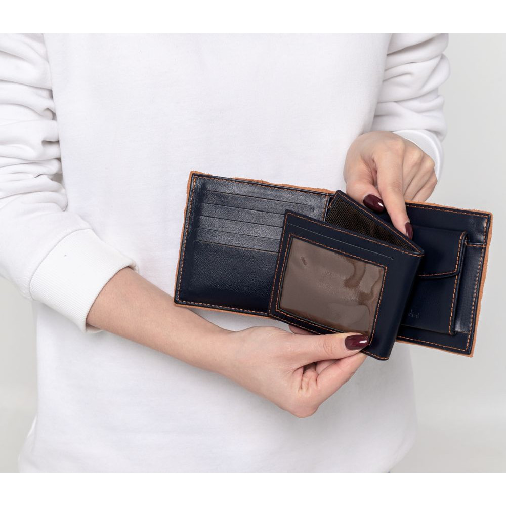 Двойное отделение для банкнот, карман для монет, съемное отделение для пластиковых карт, водительского удостоверения и пропуска.