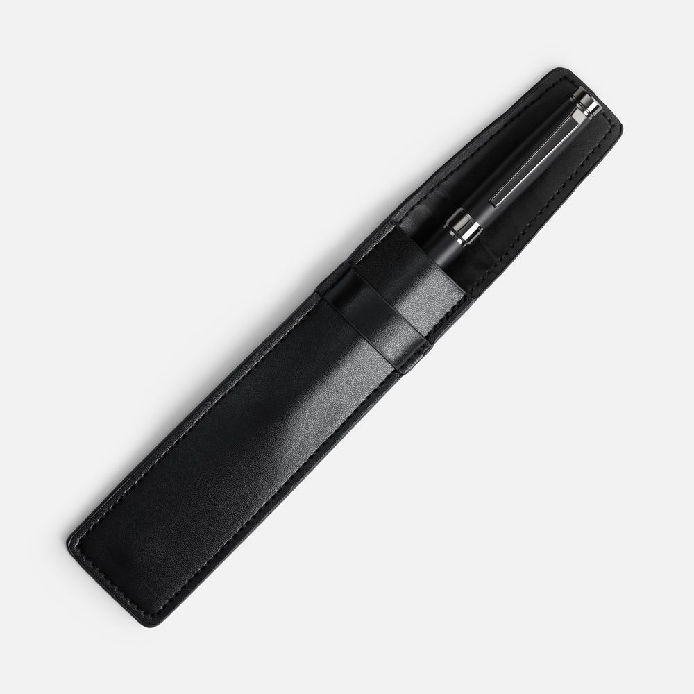 Роллер в матовом корпусе с глянцевыми деталями в оттенке gun metal выглядит одновременно сдержанно и презентабельно, а чехол из искусственной кожи не только защищает ручку от пыли и царапин, но и дополнительно подчеркивает статус владельца.
