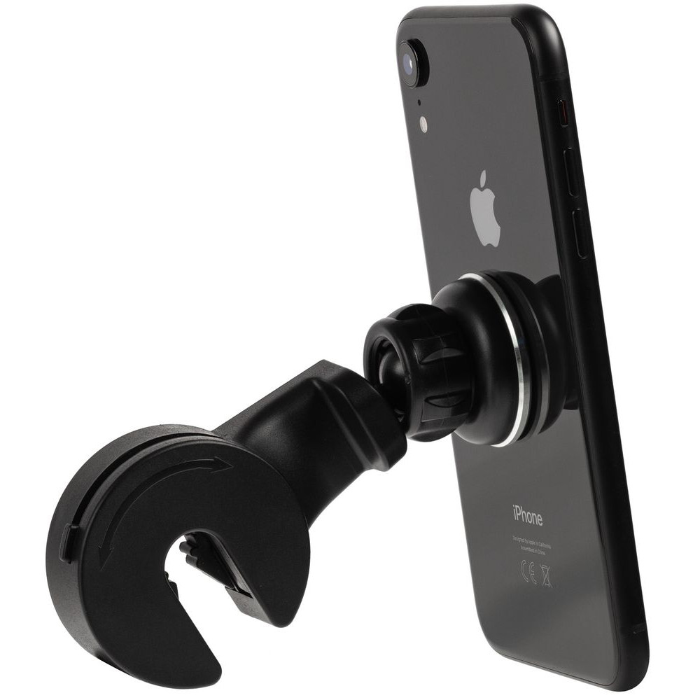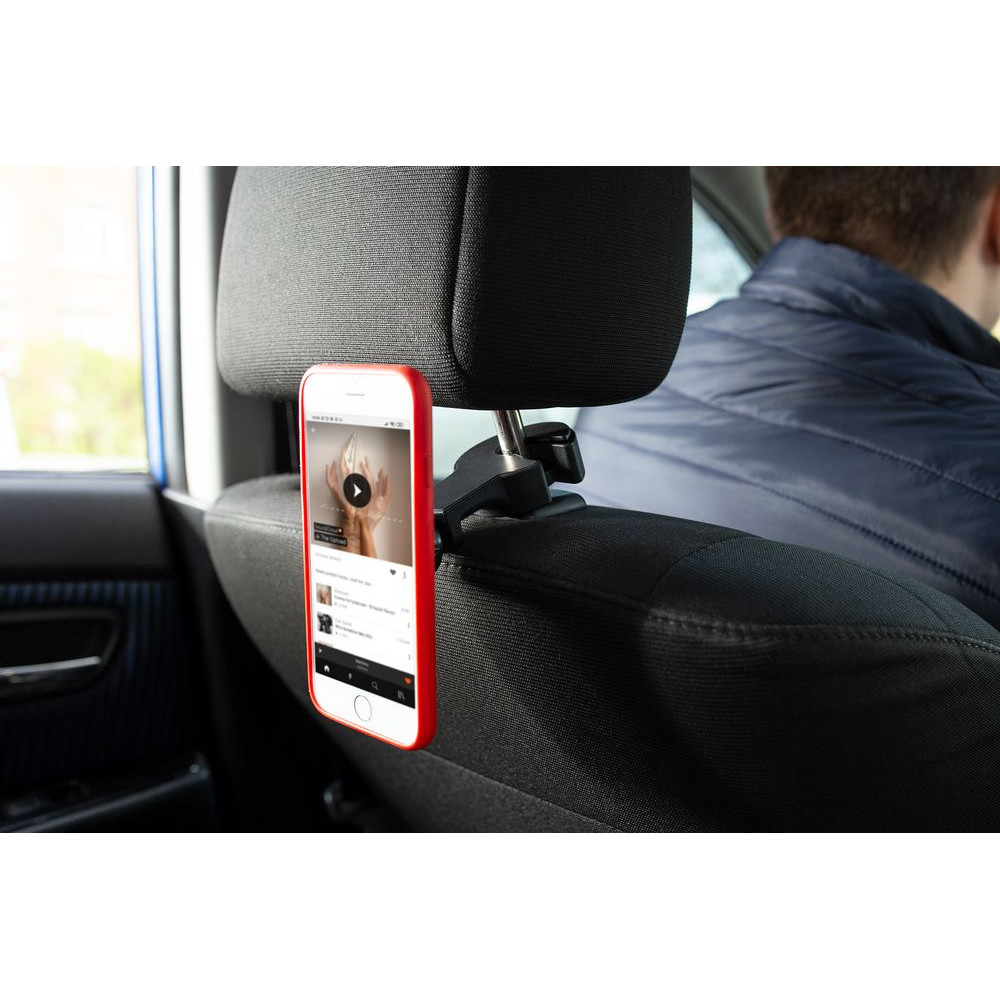 Держатель с помощью крюка крепится на подголовник.В комплекте две металлические пластины, которые можно приклеить с помощью двухстороннего скотча (в комплекте) или вложить под заднюю крышку или чехол, чтобы не портить внешний вид телефона.
