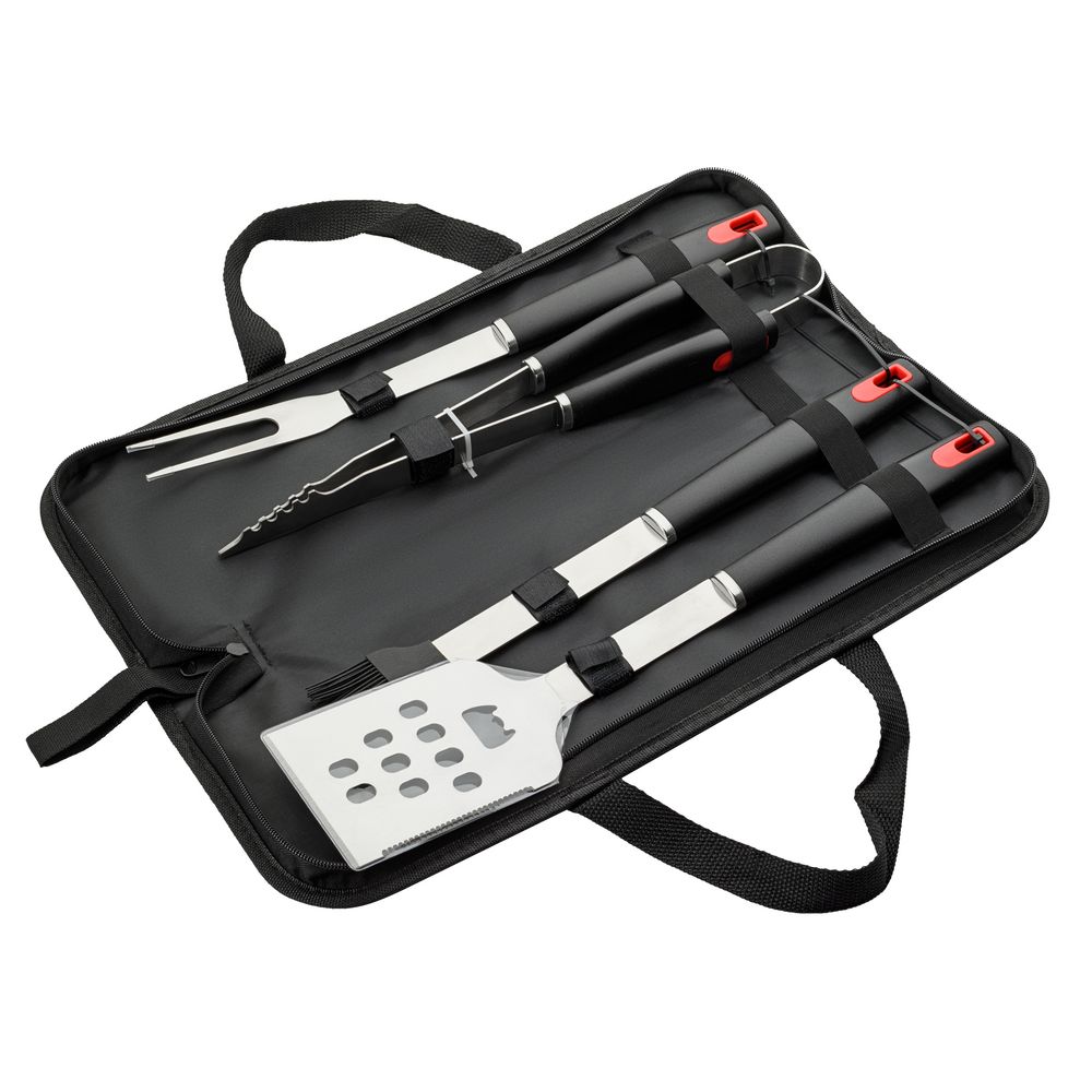 Приборы для барбекю для приготовления продуктов на гриле, мангале или в жаровне. Рабочие части вилки, лопатки и щипцов изготовлены из нержавеющей стали и выдерживают высокие температуры. Рабочая часть кисти выполнена из силикона — современного и комфортного материала, который выдерживает высокие температуры (до 200 ˚С) и не царапает антипригарное, тефлоновое, керамическое покрытия.