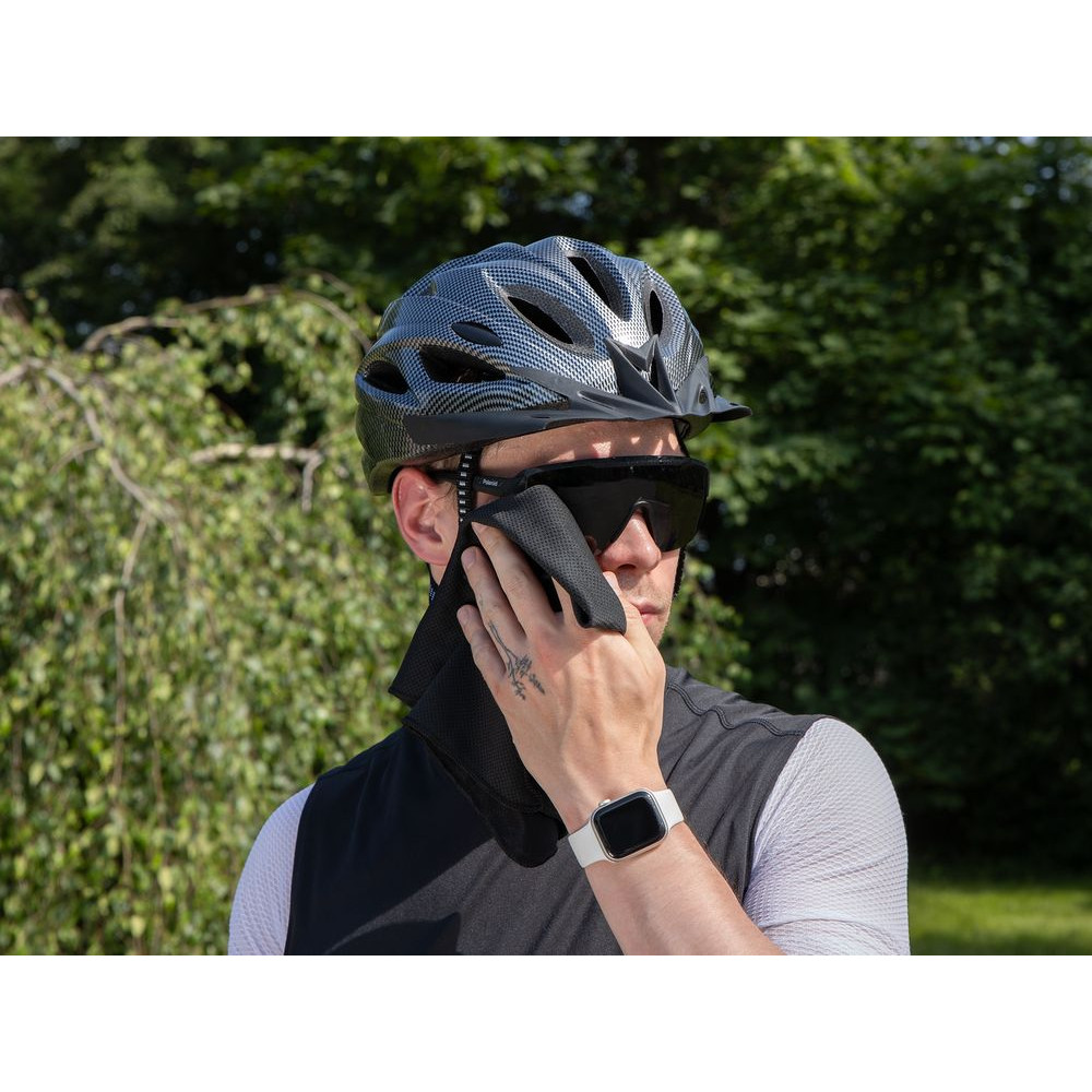 Полотенце поглощает тепло и регулирует температуру благодаря особенной структуре ткани из гидрофобных волокон с технологией трехмерного объемного плетения. Они ускоренно испаряют влагу, обеспечивая тем самым интенсивное снижение температуры.