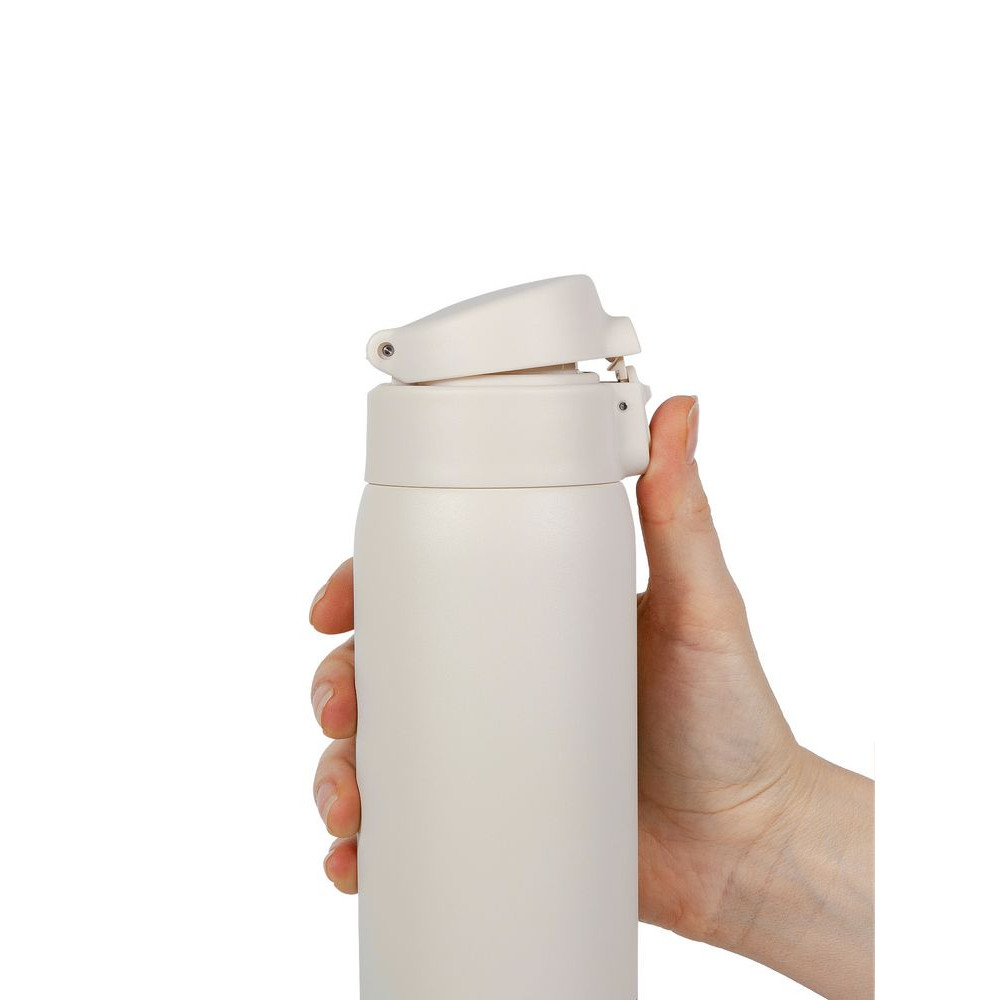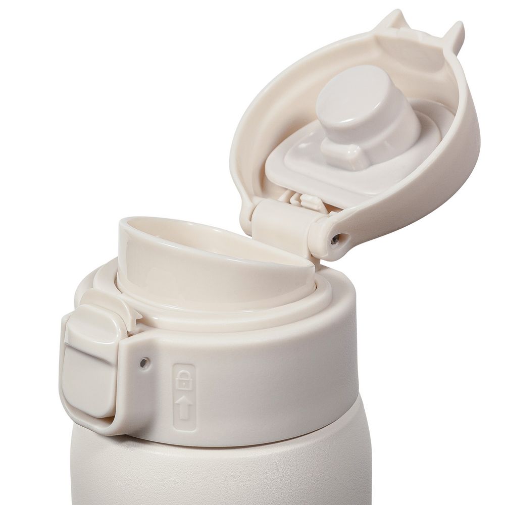 Термокружку легко открыть одной рукой — особенно удобно в машине или на улице. Дополнительный фиксатор на крышке предотвратит случайное проливание напитка.
